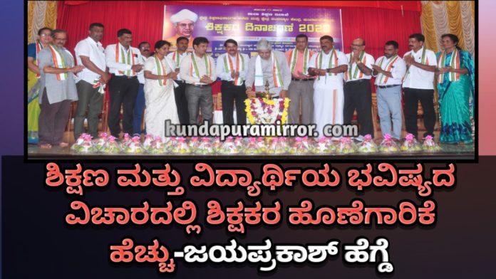 ಶಾಲಾ ಶಿಕ್ಷಣ ಇಲಾಖೆ, ಕ್ಷೇತ್ರ ಶಿಕ್ಷಣಾಧಿಕಾರಿಗಳ ಕಛೇರಿ ಮತ್ತು ಸಂಪನ್ಮೂಲ ಕೇಂದ್ರ ಕುಂದಾಪುರ ವಲಯ ಇವರ ಆಶ್ರಯದಲ್ಲಿ ಕುಂದಾಪುರದ ಆರ್.ಎನ್.ಶೆಟ್ಟಿ ಸಭಾಭವನದಲ್ಲಿ ನಡೆದ ಶಿಕ್ಷಕರ ದಿನಾಚರಣೆ-2023 ಕಾರ್ಯಕ್ರಮವನ್ನು ಉದ್ಘಾಟಿಸಿ ಮಾತನಾಡಿದರು.