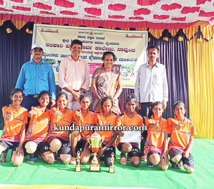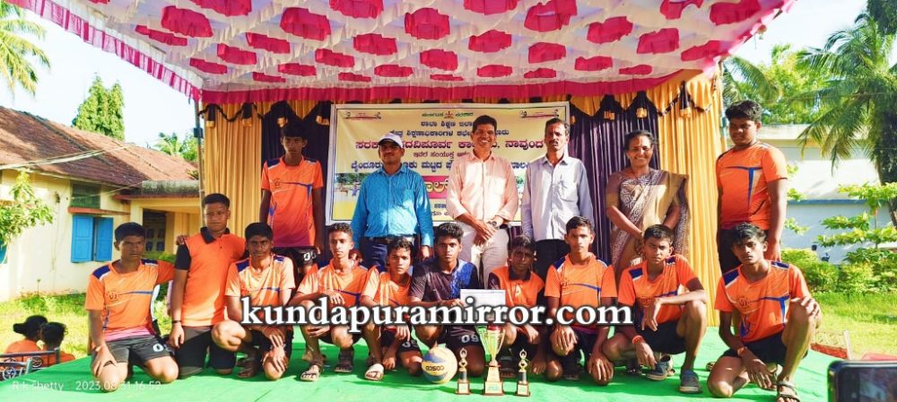 ಬೈಂದೂರು :ಕ್ಷೇತ್ರ ಶಿಕ್ಷಣಾಧೀಕಾರಿ ಕಛೇರಿ ಬೈಂದೂರು ಹಾಗೂ ಸ.ಪ.ಪೂ.ಕಾಲೇಜು ನಾವುಂದ ಇವರ ಸಹಯೋಗ ದೊಂದಿಗೆ ಜರುಗಿದ ತಾಲೂಕು ಮಟ್ಟದ ವಾಲಿಬಾಲ್ ಪಂದ್ಯಾಟದಲ್ಲಿ ಉಪ್ಪಿನ ಕುದ್ರು ಪ್ರೌಢಶಾಲೆಯ ಬಾಲಕಿಯರು ಪ್ರಥಮ ಸ್ಥಾನ ಪಡೆದು ಜಿಲ್ಲಾ ಮಟ್ಟಕ್ಕೆ ಆಯ್ಕೆಯಾಗಿರುತ್ತಾರ ಹಾಗೂ ಬಾಲಕರು ದ್ವೀತಿಯ ಸ್ಥಾನ ಪಡೆದಿರುತ್ತಾರೆ. ಇವರನ್ನು ಶಾಲಾ ಮುಖ್ಯೋಪಾಧ್ಯಾಯ ರು ಶಿಕ್ಷಕ ವೃಂದ ಹಾಗೂ ಶಾಲಾ ಎಸ್.ಡಿ.ಎಮ್.ಸಿ. ಅಧ್ಯಕ್ಷರು ಹಾಗೂ ಸದಸ್ಯರು ಅಭಿನಂದಿಸಿದ್ದಾರೆ.