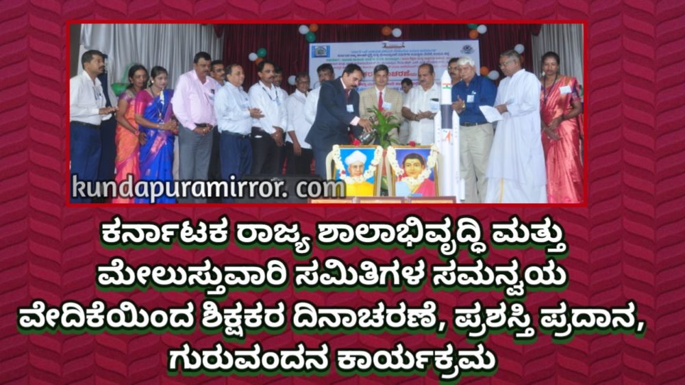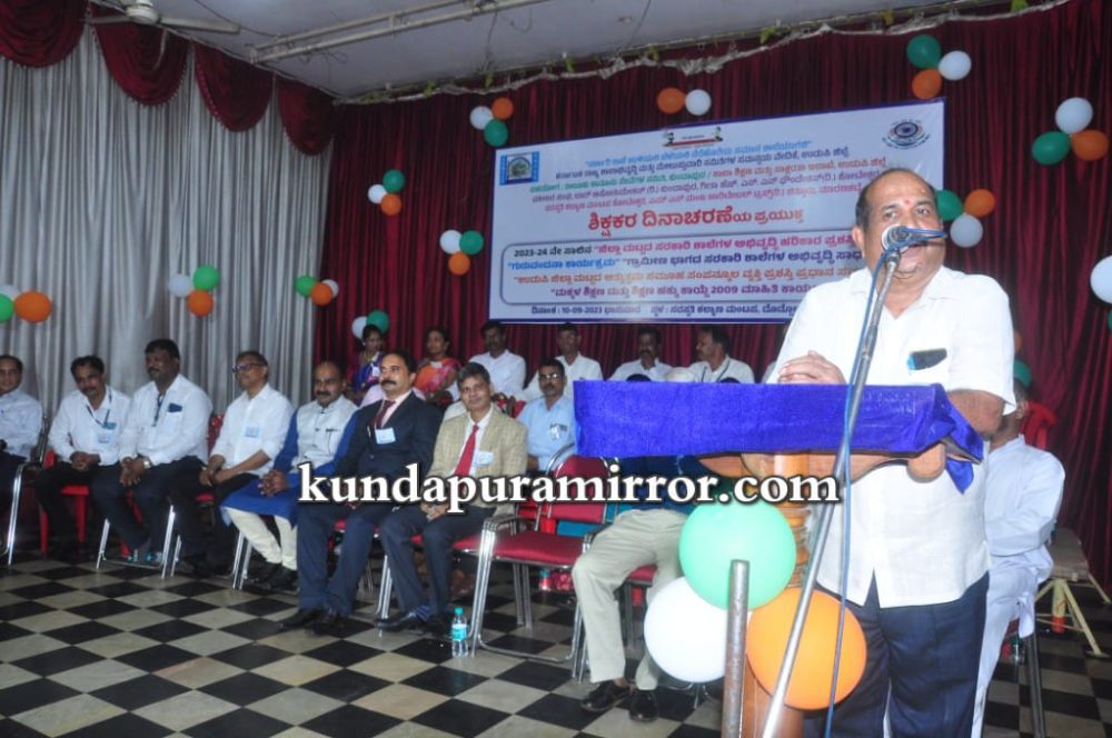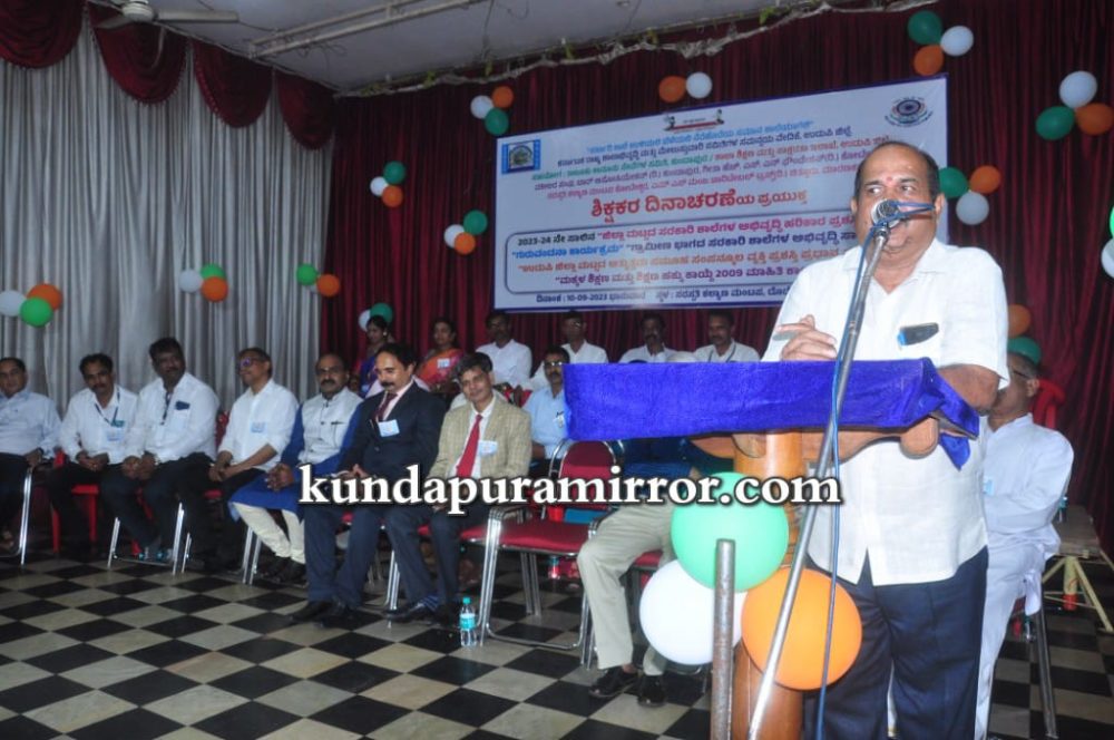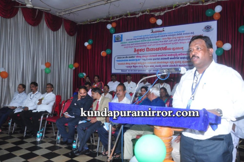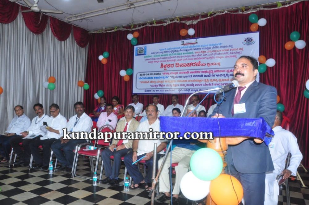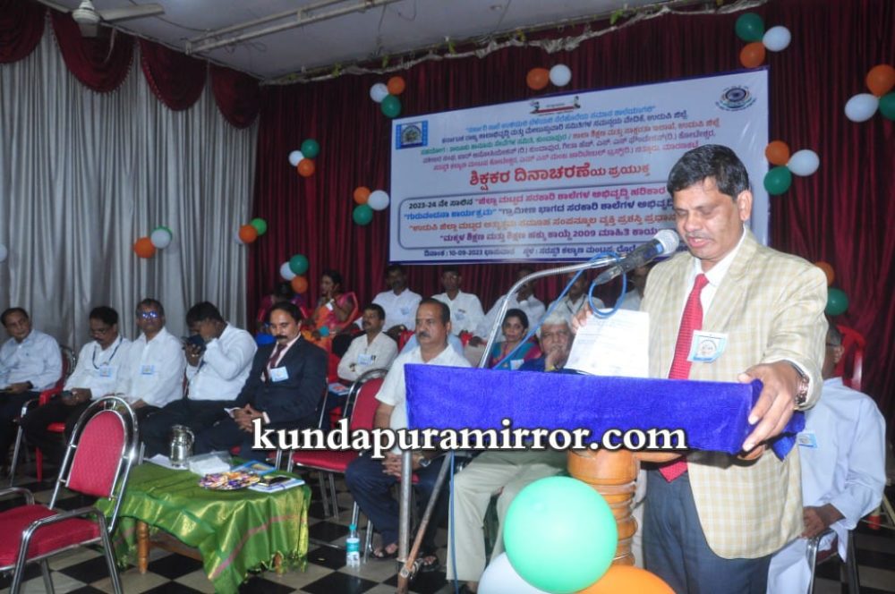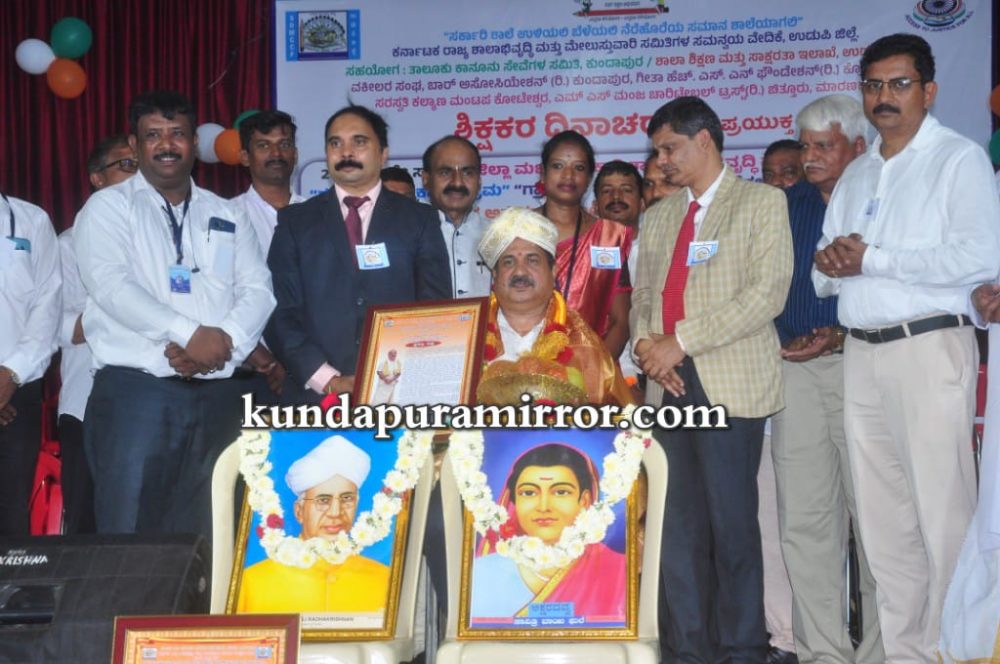 ಕರ್ನಾಟಕ ರಾಜ್ಯ ಶಾಲಾಭಿವೃದ್ಧಿ ಮತ್ತು ಮೇಲುಸ್ತುವಾರಿ ಸಮಿತಿಗಳ ಸಮನ್ವಯ ವೇದಿಕೆ, ಉಡುಪಿ ಜಿಲ್ಲೆ ನೇತೃತ್ವದಲ್ಲಿ ತಾಲೂಕು ಕಾನೂನು ಸೇವಾ ಸಮಿತಿ ಕುಂದಾಪುರ, ವಕೀಲರ ಸಂಘ, ಬಾರ್ ಅಸೋಸಿಯೇಷನ್ ಕುಂದಾಪುರ. ಗೀತಾಹೆಚ್.ಎಸ್. ಫೌಂಡೇಶನ್ ಕೋಟೇಶ್ವರ, ಸರಸ್ವತಿ ಕಲ್ಯಾಣ ಮಂಟಪ ಕೋಟೇಶ್ವರ, ಎಮ್. ಎಸ್.ಮಂಜ ಚಾರಿಟೆಬಲ್ ಟ್ರಸ್ಟ್ ಚಿತ್ತೂರು ಮಾರಣಕಟ್ಟೆ ಇವರ ಸಹಭಾಗಿತ್ವದಲ್ಲಿ ಕೊಟೇಶ್ವರದ ಸರಸ್ವತೀ ಕಲ್ಯಾಣ ಮಂಟಪದಲ್ಲಿ ನಡೆದ ಶಿಕ್ಷಕರ ದಿನಾಚರಣೆಯ ಪ್ರಯುಕ್ತ ಪ್ರಶಸ್ತಿ ಪ್ರದಾನ, ಗುರುವಂದನ ಕಾರ್ಯಕ್ರಮವನ್ನು ಉದ್ಘಾಟಿಸಿ ಮಾತನಾಡಿದರು.