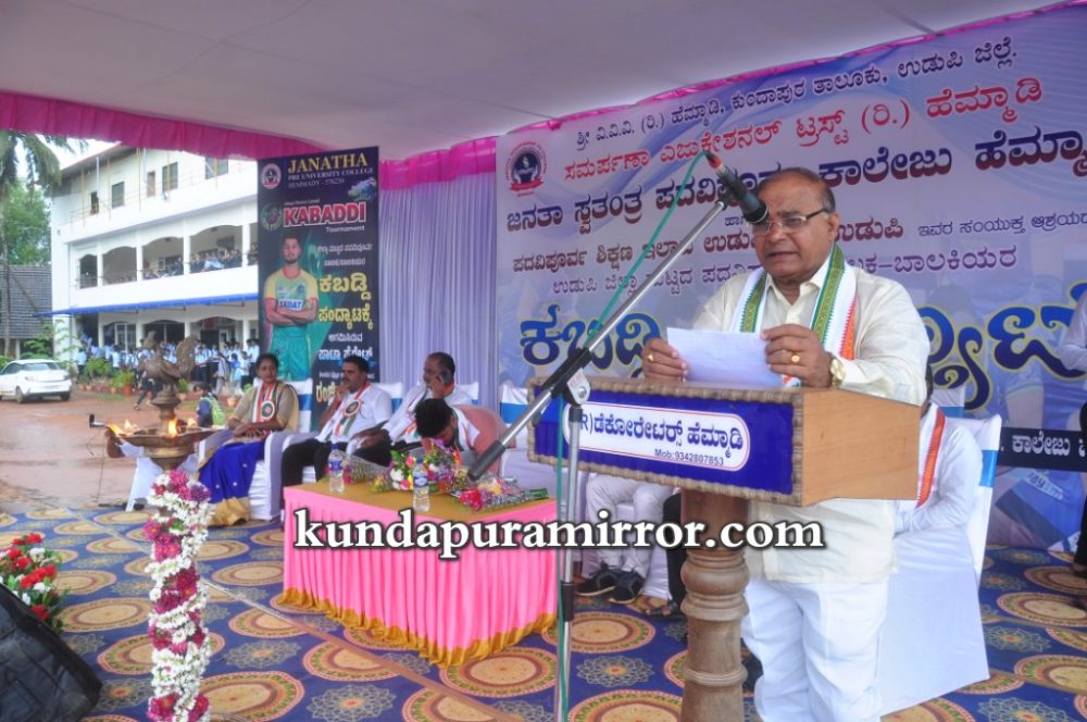 ಅವರು ಪದವಿಪೂರ್ವ ಶಿಕ್ಷಣ ಇಲಾಖೆ ಉಡುಪಿ, ಜನತಾ ಸ್ವತಂತ್ರ ಪದವಿಪೂರ್ವ ಕಾಲೇಜಿನಲ್ಲಿ ಆಯೋಜಿಸಿದ ಜಿಲ್ಲಾ ಮಟ್ಟದ ಪದವಿಪೂರ್ವ ಬಾಲಕ/ಬಾಲಕಿಯರ ಕಬಡ್ಡಿ ಪಂದ್ಯಾಟದ ಉದ್ಘಾಟನೆಯನ್ನು ನೆರವೇರಿಸಿ ಮಾತನಾಡಿದರು.