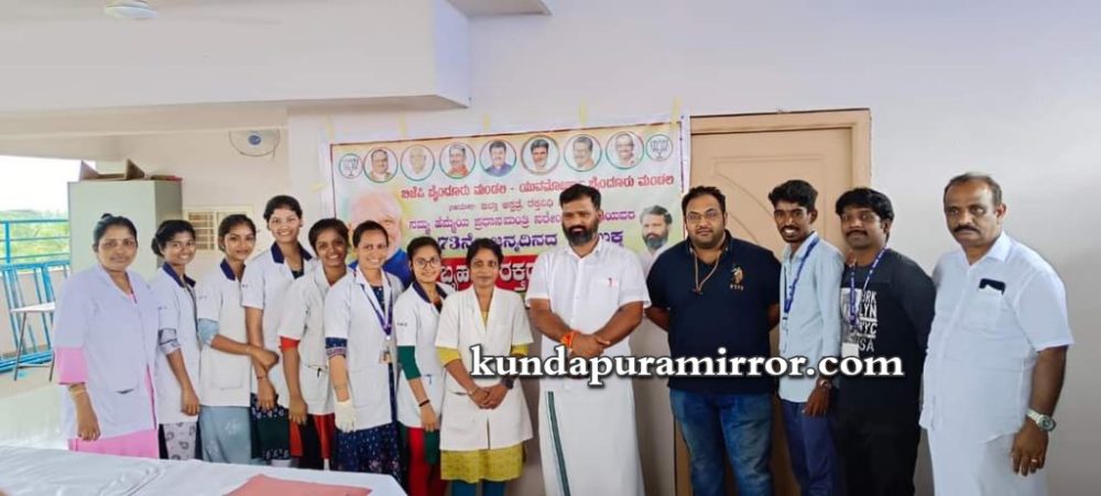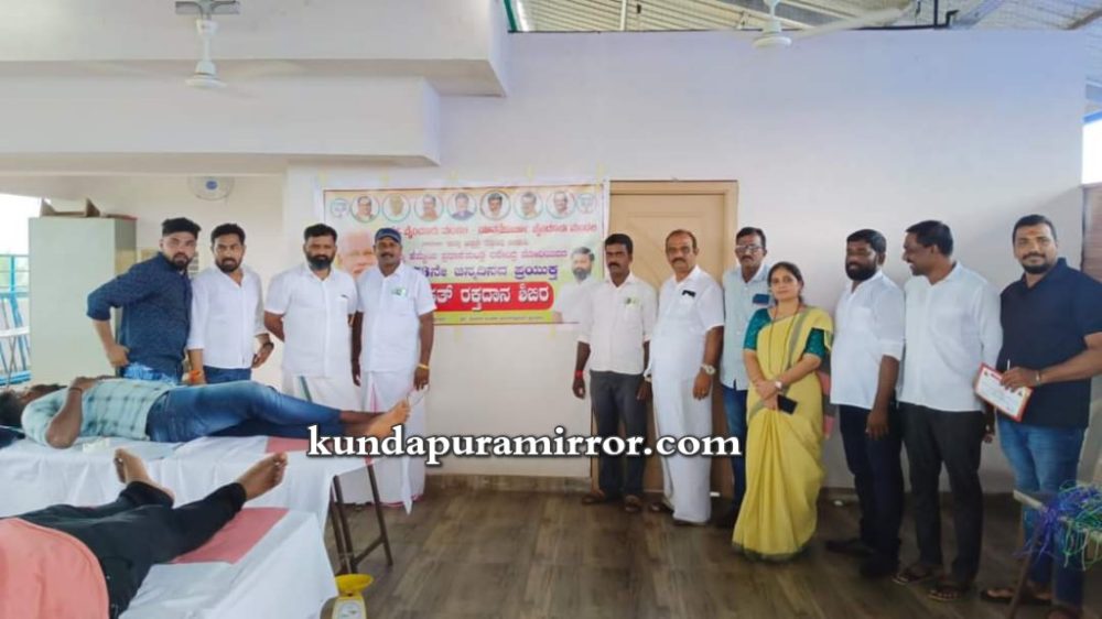 ಬೈಂದೂರು :ಪ್ರಧಾನ ಮಂತ್ರಿ ನರೇಂದ್ರ ಮೋದಿಯವರ 73ನೇ ಜನ್ಮದಿನದ ಪ್ರಯುಕ್ತ ಬಿಜೆಪಿ ಯುವ ಮೋರ್ಚಾ ಬೈಂದೂರು ಮಂಡಲ ವತಿಯಿಂದ ರಕ್ತದಾನ ಶಿಬಿರ ನಡೆಯಿತು.