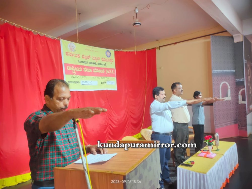 ದೈಹಿಕ ಶಿಕ್ಷಣ ಶಿಕ್ಷಕ ಮಂಜುನಾಥ್ ಹೊಳ್ಳ ಅವರು ವಿದ್ಯಾರ್ಥಿಗಳಿಗೆ ಸೇವೆಗಾಗಿ ಬಾಳು ಎಂಬ ಎನ್. ಎಸ್. ಎಸ್. ಪ್ರತಿಜ್ಞಾ ವಿಧಿಯನ್ನು ಬೋಧಿಸಿದರು. ವಿದ್ಯಾರ್ಥಿಗಳಿಗೆ ಎನ್ ಎಸ್ ಎಸ್ ಡೈರಿಯನ್ನು ವಿತರಿಸಲಾಯಿತು.