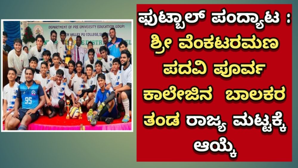 ಕುಂದಾಪುರ : ಉಡುಪಿ ಜಿಲ್ಲಾ ಪದವಿ ಪೂರ್ವ ಶಿಕ್ಷಣ ಇಲಾಖೆ ಹಾಗೂ ಗ್ರೀನ್ ವ್ಯಾಲಿ ಪದವಿ ಪೂರ್ವ ಕಾಲೇಜು ಶಿರೂರು ಇವರ ಸಹಯೋಗದಲ್ಲಿ ಸೆ.23ರಂದು ನಡೆದ ಜಿಲ್ಲಾ ಮಟ್ಟದ ಫುಟ್ಬಾಲ್ ಪಂದ್ಯಾಟ ದಲ್ಲಿ ಶ್ರೀ ವೆಂಕಟರಮಣ ಪದವಿ ಪೂರ್ವ ಕಾಲೇಜಿನ ಬಾಲಕರ ತಂಡ ಪ್ರಥಮ ಸ್ಥಾನವನ್ನು ಪಡೆದು, ರಾಜ್ಯ ಮಟ್ಟಕ್ಕೆ ಆಯ್ಕೆಯಾಗಿದ್ದಾರೆ.