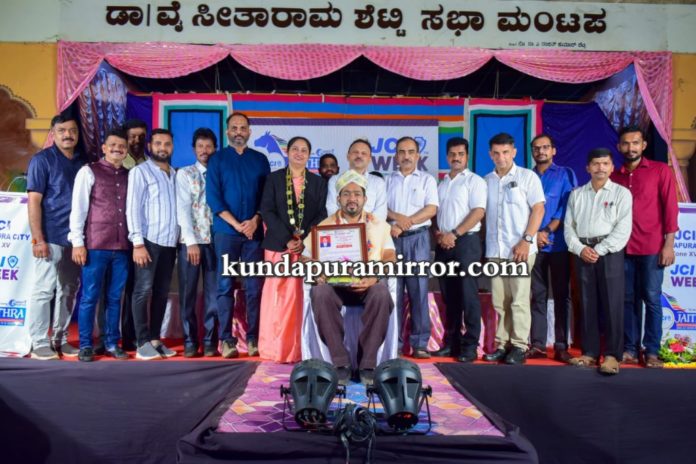 ಕುಂದಾಪುರ :ಜೆಸಿಐ ಕುಂದಾಪುರ ಸಿಟಿ ಆಶ್ರಯದಲ್ಲಿ ಕುಂದಾಪುರದ ಶ್ರೀ ಲಕ್ಷ್ಮಿ ನರಸಿಂಹ ಕಲಾ ಮಂದಿರದಲ್ಲಿ ಜೇಸಿ ಸಪ್ತಾಹದ ಪ್ರಯುಕ್ತ ಯುವ ಉದ್ಯಮಿ ಪ್ರಕಾಶ್ ಭಟ್ ಅವರಿಗೆ ಸಾಧಕ ಪ್ರಶಸ್ತಿ ನೀಡಿ ಸನ್ಮಾನಿಸಲಾಯಿತು