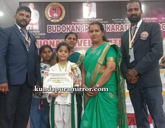 ಕುಂದಾಪುರ: ಮಣಿಪಾಲದಲ್ಲಿ ಇತ್ತೀಚೆಗೆ ಆಯೋಜಿಸಲಾದ ರಾಷ್ಟ್ರ ಮಟ್ಟದ ಕರಾಟೆ ಚಾಂಪಿಯನ್ ಸ್ಪರ್ಧೆಯ ಬಾಲಕಿಯರ ವಿಭಾಗಲ್ಲಿ ನಡೆದ ಕುಮಿಟೆ ಮತ್ತು ಕಟಾ ಎರಡೂ ಸ್ಪರ್ಧೆಗಳಲ್ಲಿ ಕುಂದಾಪುರದ ಓಕ್ ವುಡ್ ಇಂಡಿಯನ್ ಸ್ಕೂಲ್ ನ 3ನೇ ತರಗತಿ ವಿದ್ಯಾರ್ಥಿನಿಯಾಗಿರುವ ಅಮೈರಾ ಶೋಲಾಪುರ್ ಪ್ರಥಮ ಸ್ಥಾನಗಳಿಸಿದ್ದಾಳೆ. ಈಕೆ ಹೆಮ್ಮಾಡಿ ಸಂತೋಷ್ ನಗರದ ನಿವಾಸಿ ರಝಿಯಾ ಸುಲ್ತಾನ ಮತ್ತು ಯಾಸೀನ್ ಫೈರೋಜ್ ದಂಪತಿಗಳ ಪುತ್ರಿಯಾಗಿದ್ದಾಳೆ. ಕುಂದಾಪುರದ ಕರಾಟೆ ಶಿಕ್ಷಕರಾದ ಕಿಯೊಶಿ ಕಿರಣ್, ಶಿಹಾನ್ ಸಂದೀಪ್, ಸಿಹಾನ್ ಶೇಕ್ ಹಾಗೂ ನಟರಾಜ್ ಅವರಲ್ಲಿ ತರಬೇತಿ ಪಡೆದಿರುತ್ತಾಳೆ.