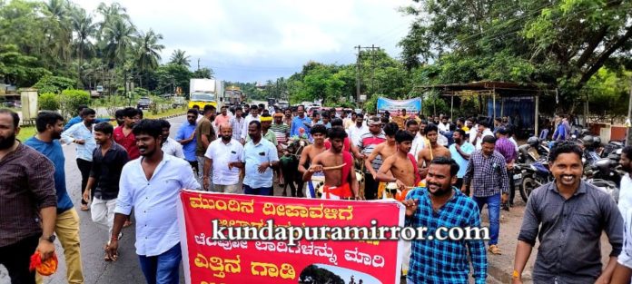ಇದೇ ವೇಳೆ ಕೋಟ ಮೂರ್ ಕೈ ಯಿಂದ ಹೊರಟ ಮೆರವಣಿಗೆ ಸಾಲಿಗ್ರಾಮ ಪ್ರವೇಶಿಸಿ ನಂತರ ಪ್ರತಿಭಟನಾ ಸ್ಥಳಕ್ಕೆ ಆಗಮಿಸಲಾಯಿತು.