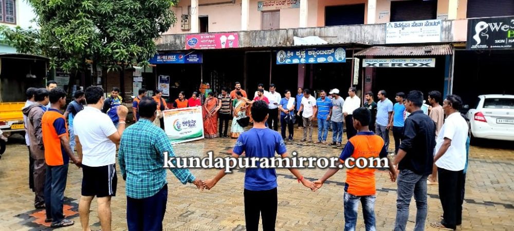 ಅಲ್ಲದೆ ಮಾನವ ಸರಪಳಿ ಹಿಡಿದ ಸ್ವಚ್ಛಘೋಷ ಮೊಳಗಿಸಿದರು.