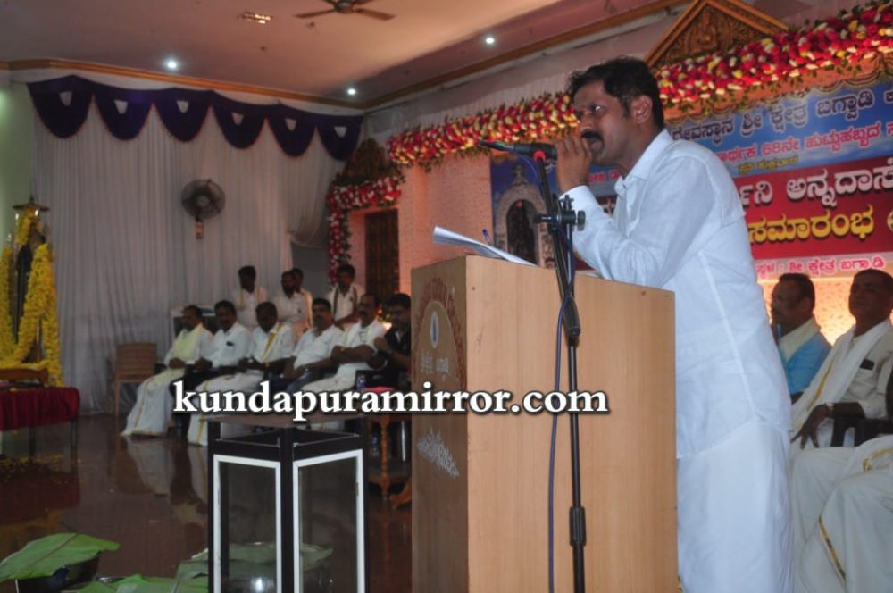 ಬಗ್ವಾಡಿ ಶ್ರೀ ಮಹಿಷಾಸುರಮರ್ದಿನಿ ದೇವಸ್ಥಾನದಲ್ಲಿ ಡಾ.ಜಿ.ಶಂಕರ್ ಅವರ 68ನೇ ಜನ್ಮದಿನಾಚರಣೆಯ ಸವಿನೆನಪಿನಲ್ಲಿ ಪ್ರತಿ ಶುಕ್ರವಾರದ ಅನ್ನದಾಸೋಹ ಯೋಜನೆಗೆ ಚಾಲನೆ ನೀಡಿ ಅವರು ಮಾತನಾಡಿದರು.