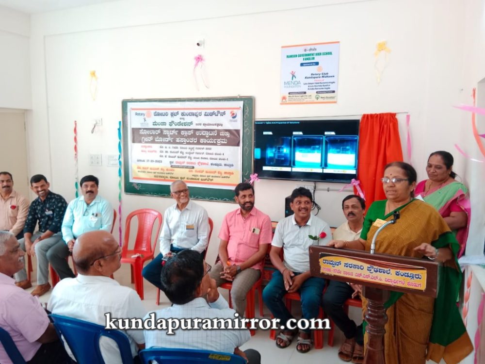 ಮಂಗಳವಾರ ಸ್ಮಾರ್ಟ್ ಕ್ಲಾಸನ್ನು ಕೊಡುಗೆ ನೀಡಿದರು. ಜಿಲ್ಲಾ ರೋಟರಿ ಗವರ್ನರ್ ಬಿ .ಸಿ ಗೀತಾ ಡಿಸ್ಟ್ರಿಕ್ಟ ಗವರ್ನರ್ 3182 ಅವರು ಶಾಲೆಗೆ ಹಸ್ತಾಂತರಿಸಿದರು. ಬಳಿಕ ಮಾತನಾಡಿದ ಅವರು, ಪ್ರಸ್ತುತ ಶೈಕ್ಷಣಿಕ ವರ್ಷಗಳಲ್ಲಿ ಆಧುನಿಕ ಶಿಕ್ಷಣ ಪದ್ಧತಿ ಮಕ್ಕಳ ಕಲಿಕೆಗೆ ಅನುಕೂಲ ಕಲ್ಪಿಸುತ್ತದೆ. ಈ ಸ್ಮಾರ್ಟ್ ಕ್ಲಾಸನ್ನು ಬಳಸಿಕೊಂಡು ವಿದ್ಯಾರ್ಥಿಗಳು ಉತ್ತಮ ಸಾಧನೆ ಮಾಡುವಂತಾಗಲಿ ಎಂದರು.