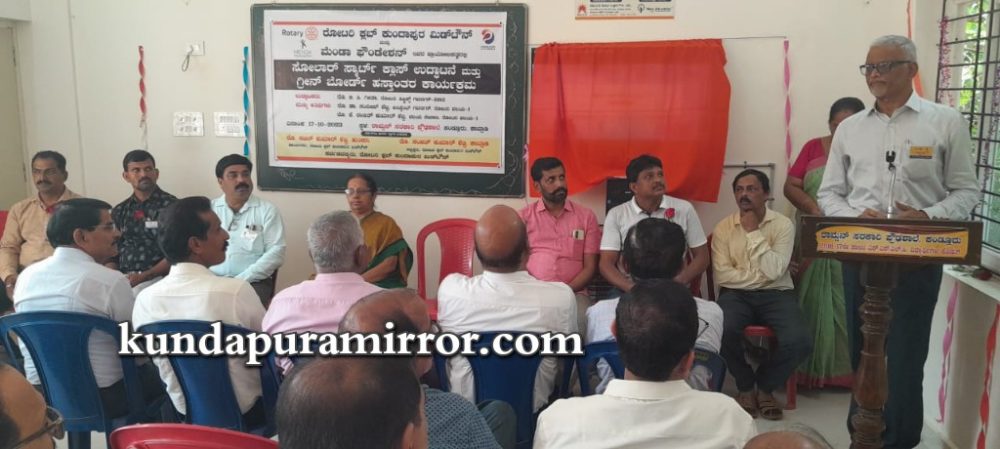 ಕೊಡುಗೆ ನೀಡಿದ ರೊ. ಸಂಪತ್ ಕುಮಾರ್ ಶೆಟ್ಟಿ ಕಾವ್ರಾಡಿ ಮಾತನಾಡಿ, ಸಂಸ್ಥೆಯ ಬಗ್ಗೆ ಇರುವ ಅಭಿಮಾನ ತಮಗೆ ಈ ಕೊಡುಗೆಯನ್ನು ನೀಡಲು ಪ್ರೇರಣೆಯಾಯಿತು ಎಂದರು. ಇದೇ ಸಂದರ್ಭದಲ್ಲಿ ರೋಟೇರಿಯನ್ ಶೇಖರ್ ಶೆಟ್ಟಿ ಇವರು ಪ್ರಥಮ ಚಿಕಿತ್ಸೆ ಪೆಟ್ಟಿಗೆಯನ್ನು ಶಾಲೆಗೆ ಕೊಡುಗೆಯಾಗಿ ನೀಡಿದರು. ರೊಟೇರಿಯನ್ ಅಬ್ದುಲ್ ಬಶೀರ್ ಮಾಲಕರು ಪ್ಲೆಸೆಂಟ್ ಫರ್ನಿಚರ್ ಕುಂದಾಪುರ ಅವರು ಶಾಲೆಗೆ ಮೂರು ಗ್ರೀನ್ ಬೋರ್ಡ್ ಗಳನ್ನು ನೀಡುವುದಾಗಿ ತಿಳಿಸಿದರು. ಶಾಲಾ ಅಭಿವೃದ್ಧಿ ಸಮಿತಿ ಗೌರವಾಧ್ಯಕ್ಷ ಸಾಮ್ರಾಟ್ ಶೆಟ್ಟಿ ಅಧ್ಯಕ್ಷತೆ ವಹಿಸಿದ್ದರು. ರೋಟರಿ ಸದಸ್ಯರು, ಎಸ್ ಡಿ ಎಂ ಸಿ ಸದಸ್ಯಪ್ರಕಾಶ್ಚಂದ್ರ ಶೆಟ್ಟಿ, ಸೆಲ್ಕೋ ಸಂಸ್ಥೆಯ ಮ್ಯಾನೇಜರ್ ಮಂಜುನಾಥ್ ಉಪಸ್ಥಿತರಿದ್ದರು. ಶಾಲಾ ಮುಖ್ಯೋಪಾಧ್ಯಾಯ ಸುರೇಶ್ ಎಸ್ ಭಟ್ ಸ್ವಾಗತಿಸಿದರು. ರೊಟೇರಿಯನ್ ಸಚಿನ್ ಕುಮಾರ್ ಶೆಟ್ಟಿ ಹುಂಚ ವಂದಿಸಿದರು. ಶಿಕ್ಷಕರಾದ ಅಜಯ್ ಕುಮಾರ್ ಶೆಟ್ಟಿ ಶ್ರೀಗೋಪಾಲ್ ವಿ ಭಟ್ ನಿತ್ಯಾನಂದ ಶೆಟ್ಟಿ, ಲಕ್ಷ್ಮೀ ಶೆಟ್ಟಿ ಉಪಸ್ಥಿತರಿದ್ದರು. ರಜನಿ ಎಸ್ ಹೆಗಡೆ ನಿರೂಪಿಸಿದರು.