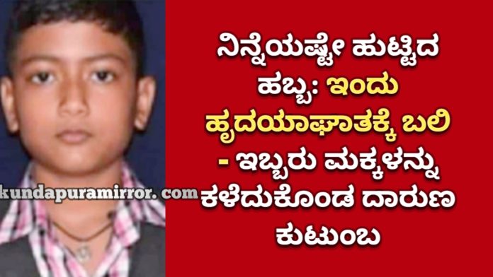 ಕುಂದಾಪುರ: ನಿನ್ನೆಯಷ್ಟೇ ತನ್ನ ಹುಟ್ಟಿಹಬ್ಬವನ್ನು ಆಚರಿಸಿಕೊಂಡಿದ್ದ ಏಳನೇ ತರಗತಿ ವಿದ್ಯಾರ್ಥಿಯೊಬ್ಬ ಇಂದು ಬೆಳಿಗ್ಗೆ ಶಾಲೆಗೆ ಹೊರಟ ಬಸ್ಸಿಗೆ ಕಾಯುತ್ತಿದ್ದ ವೇಳೆ ಹೃದಯಾಘಾತಕ್ಕೊಳಗಾಗಿ ಸಾವನ್ನಪ್ಪಿದ ಹೃದಯವಿದ್ರಾವಕ ಘಟನೆ ಕುಂದಾಪುರ ತಾಲೂಕಿನ ತಲ್ಲೂರು ಎಂಬಲ್ಲಿ ನಡೆದಿದೆ. ಕುಂದಾಪುರದಲ್ಲಿ ಅಕ್ಷರದಾಸೋಹ ಅಧಿಕಾರಿಯಾಗಿ ಸೇವೆ ಸಲ್ಲಿಸುತ್ತಿರುವ ಅರುಣ್ ಕುಮಾರ್ ಶೆಟ್ಟಿ ಎಂಬುವರ ಪುತ್ರ, ಹಟ್ಟಿಯಂಗಡಿ ಶ್ರೀ ಸಿದ್ದಿವಿನಾಯಕ ಶಾಲೆಯ ಏಳನೇ ತರಗತಿ ವಿದ್ಯಾರ್ಥಿ ಪೃಥ್ವಿರಾಜ್ ಶೆಟ್ಟಿ ಎಂಬಾತನೇ ಹೃದಯಾಘಾತಕ್ಕೊಳಗಾಗಿ ಸಾವನ್ನಪ್ಪಿದ ಬಾಲಕ.
