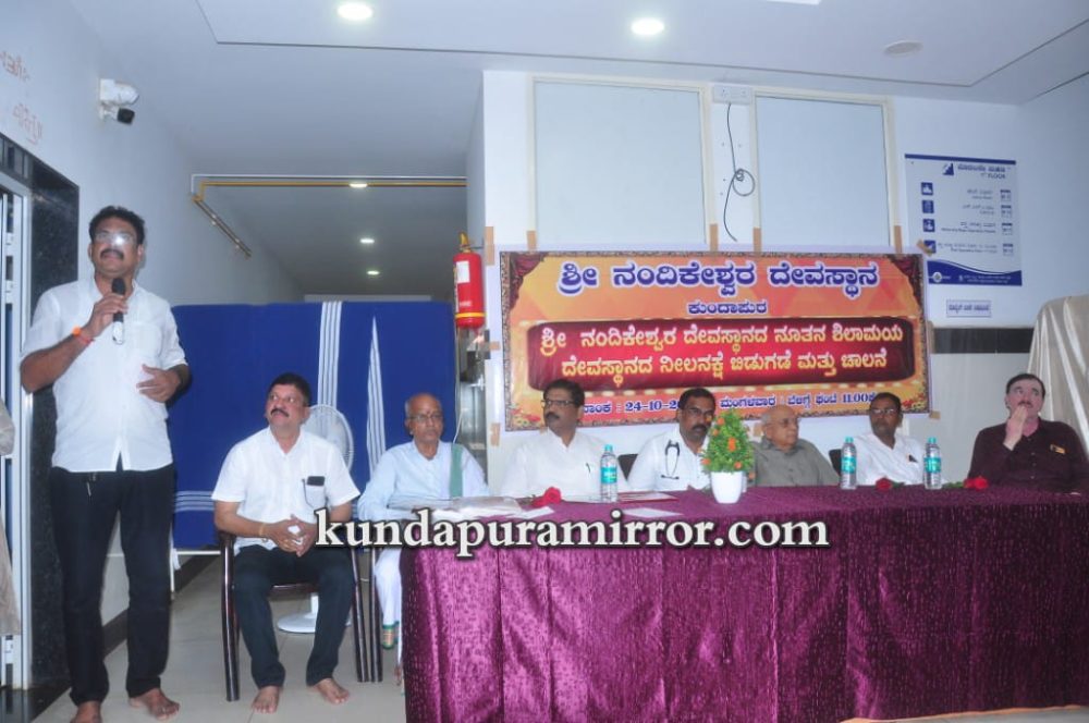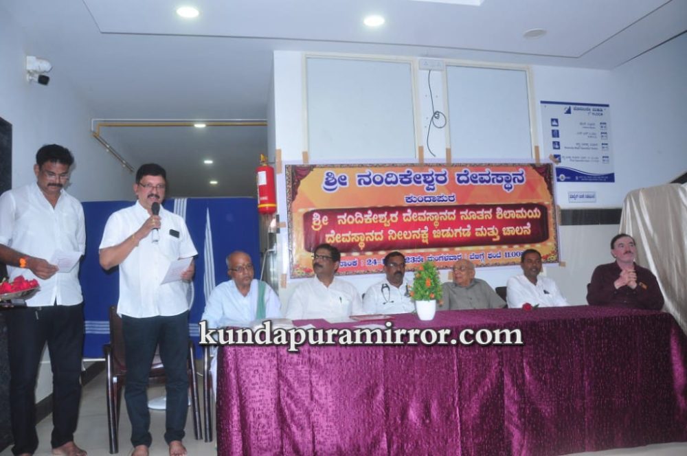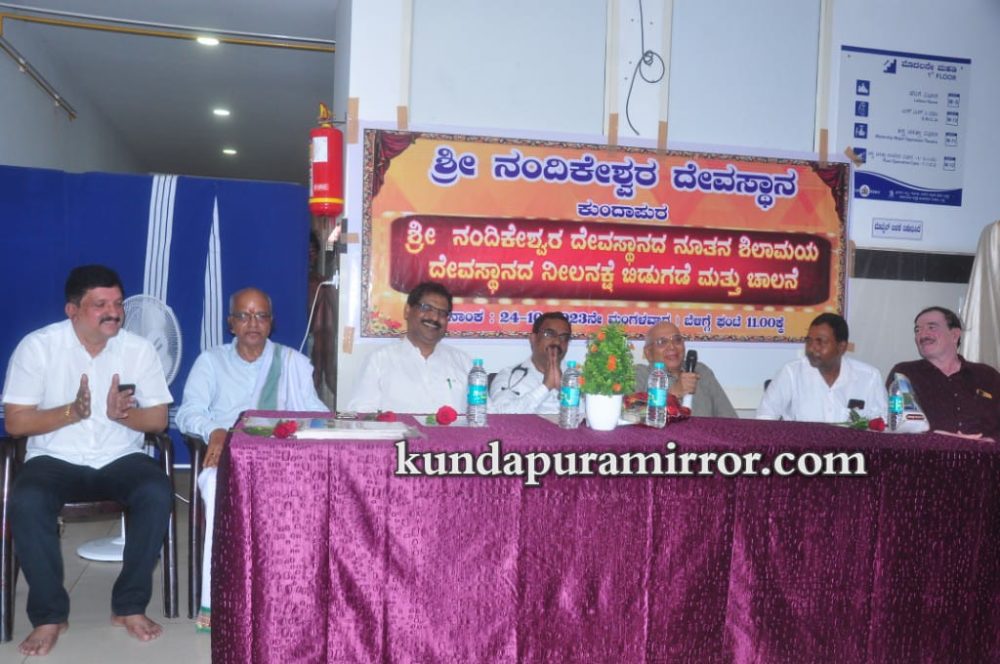 ಕುಂದಾಪುರ: ಇಲ್ಲಿನ ಸರಕಾರಿ ಆಸ್ಪತ್ರೆಯ ಆವರಣದಲ್ಲಿರುವ ಶ್ರೀ ನಂದಿಕೇಶ್ವರ ದೇವಸ್ಥಾನದ ನೂತನ ಶಿಲಾಮಯ ದೇವಸ್ಥಾನದ ನೀಲನಕ್ಷೆ ಬಿಡುಗಡೆ ಹಾಗೂ ಜೀರ್ಣೋದ್ಧಾರ ಕಾರ್ಯಕ್ಕೆ ಚಾಲನೆ ನೀಡುವ ಕಾರ್ಯಕ್ರಮ ಅ.24ರಂದು ನಡೆಯಿತು.