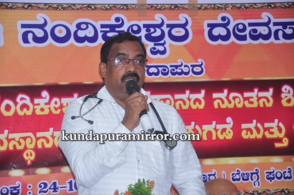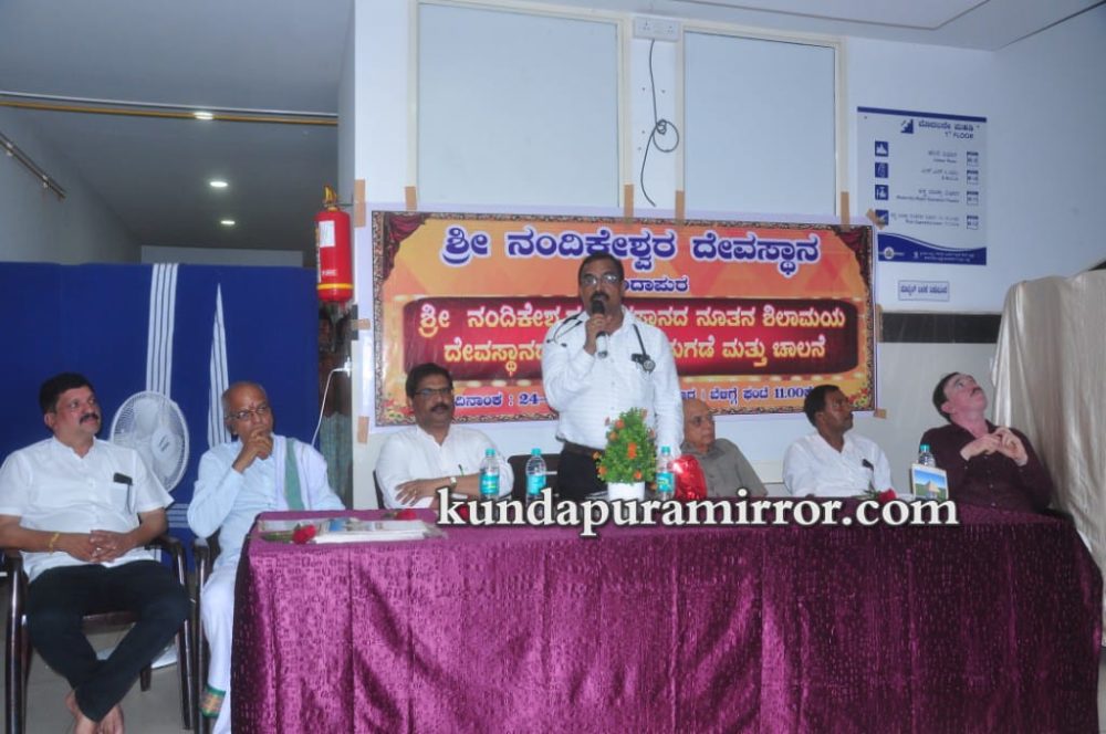 ಉದ್ಯಮಿ ದತ್ತಾನಂದ ಅವರು ನೂತನ ದೇವಳದ ನೀಲನಕ್ಷೆ ಬಿಡುಗಡೆಗೊಳಿಸಿ ಮಾತನಾಡಿ, ಧಾರ್ಮಿಕ ಸ್ಥಳಗಳಲ್ಲಿನ ಆರಾಧನೆ ಭಗವಂತನಿಗೆ ಸಮರ್ಪಿತವಾಗುತ್ತದೆ. ಪ್ರಾಚಿನವಾದ ದೇವಸ್ಥಾನಗಳನ್ನು ಅಭಿವೃದ್ದಿ ಪಡಿಸಿ, ಧಾರ್ಮಿಕ ವಿಧಿವತ್ತಾಗಿ ವಿಧಿವಿಧಾನಗಳು ನಡೆದಾಗ ಊರಿಗೆ ಸುಭೀಕ್ಷೆಯಾಗುತ್ತದೆ. ಆ ನಿಟ್ಟಿನಲ್ಲಿ ಸರ್ಕಾರಿ ಆಸ್ಪತ್ರೆ ಆವರಣದಲ್ಲಿ ನಂದಿಕೇಶ್ವರ ದೇವಸ್ಥಾನದ ಜೀರ್ಣೋದ್ದಾರ ಪ್ರಸ್ತುತವಾಗಿದೆ ಎಂದರು.
