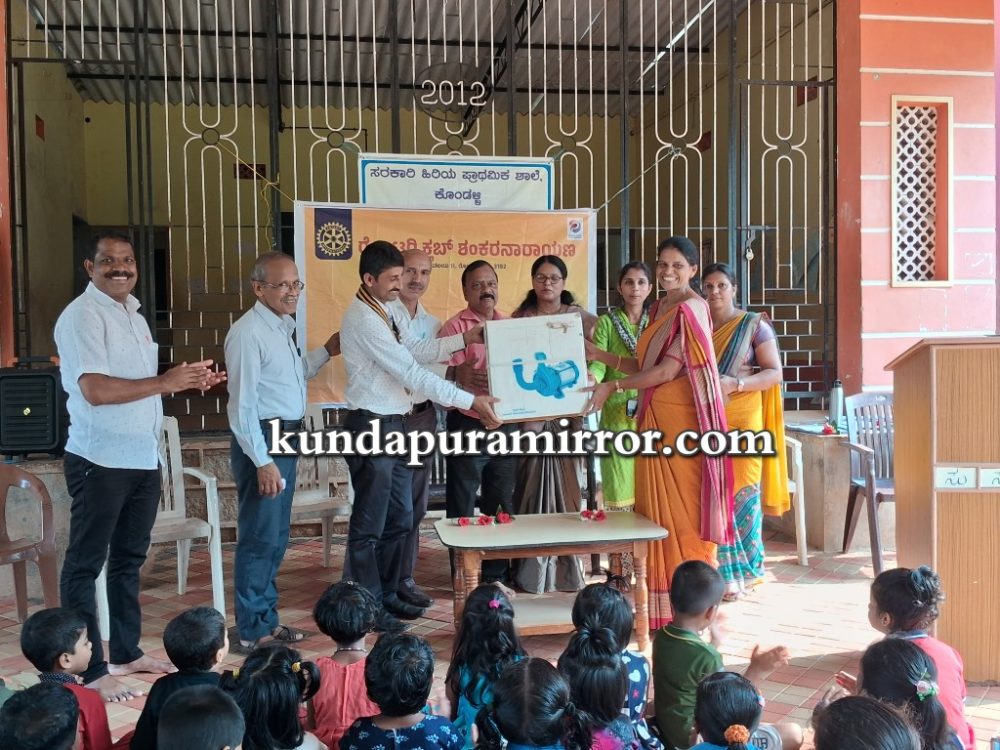 ಕುಂದಾಪುರ :ರೋಟರಿ ಕ್ಲಬ್ ಶಂಕರನಾರಾಯಣದ ವತಿಯಿಂದ ಕೊಂಡಳ್ಳಿ ಶಾಲೆಗೆ ಕೈ ತೊಳೆಯುವ ಘಟಕ ಹಾಗೂ ಅಂಗನವಾಡಿಗೆ ನೀರಿನ ಪಂಪ್ ಹಸ್ತಾಂತರ ಕಾರ್ಯಕ್ರಮ ಸಮುದಾಯದತ್ತ ಶಾಲಾ ಕಾರ್ಯಕ್ರಮದಲ್ಲಿ ನೆರವೇರಿತು.