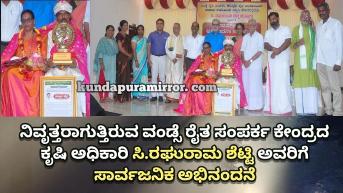 ಕೃಷಿ ಸಹಾಯಕರಾಗಿ, ಗ್ರಾಮ ಪಂಚಾಯತ್ ಕಾರ್ಯದರ್ಶಿಯಾಗಿ, ಸಹಾಯಕ ಕೃಷಿ ಅಧಿಕಾರಿಯಾಗಿ, ತಾಲೂಕು ಜಲನಯನ ಅಧಿಕಾರಿಯಾಗಿ, ಸೌಕೂರು ದೇವಸ್ಥಾನದ ಆಡಳಿತಾಧಿಕಾರಿಯಾಗಿ, ಗ್ರಾಮ ಪಂಚಾಯತ್ ಆಡಳಿತಾಧಿಕಾರಿಯಾಗಿ, ವಂಡ್ಸೆ ರೈತ ಸಂಪರ್ಕ ಕೇಂದ್ರದ ಕೃಷಿ ಅಧಿಕಾರಿಯಾಗಿ ಸೇವೆ ಸಲ್ಲಿಸಿ ನಿವೃತ್ತರಾದ ರಘುರಾಮ ಶೆಟ್ಟಿ ಅವರನ್ನುಸಾರ್ವಜನಿಕ ಅಭಿನಂದನಾ ಸಮಿತಿಯ ವತಿಯಿಂದ ರಘುರಾಮ ಶೆಟ್ಟಿ ದಂಪತಿಗಳನ್ನು ಸನ್ಮಾನಿಸಲಾಯಿತು. ಸಾರ್ವಜನಿಕರು, ವಿವಿಧ ಸಂಘ ಸಂಸ್ಥೆಗಳ ಗಣ್ಯರು ಗೌರವಿಸಿದರು.