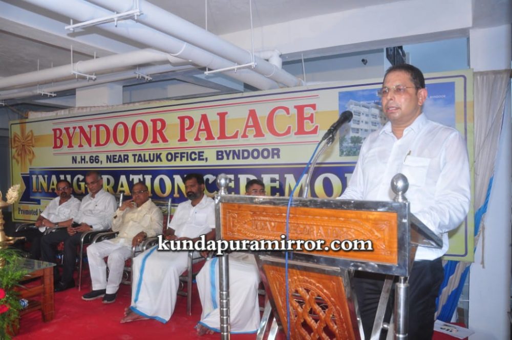 ಅವರು ಭಾನುವಾರ ಬೈಂದೂರಿನ ತಾಲೂಕು ಕಚೇರಿ ಸಮೀಪದಲ್ಲಿರುವ ರಾಷ್ಟ್ರೀಯ ಹೆದ್ದಾರಿ 66ರ ಬದಿಯಲ್ಲಿ ನೂತನವಾಗಿ ನಿರ್ಮಾಣಗೊಂಡ ಬೈಂದೂರು ಪ್ಯಾಲೇಸ್ ಉದ್ಘಾಟನಾ ಸಮಾರಂಭದಲ್ಲಿ ಶುಭಾಶಂಸನೆ ಮಾಡಿದರು.