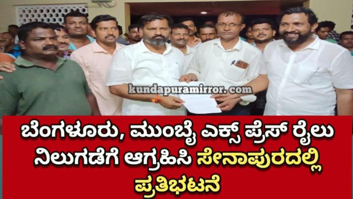 ಕಳೆದ ಹಲವು ದಶಕಗಳಿಂದ ಸೇನಾಪುರ ರೈಲು ನಿಲ್ದಾಣದಲ್ಲಿ ಲೋಕಲ್ ರೈಲುಗಳು ಮಾತ್ರ ನಿಲುಗಡೆಯಾಗುತ್ತಿದ್ದವು. ಆದರೆ ಸೇನಾಪುರ ಸುತ್ತಮುತ್ತಲಿನ ಪ್ರದೇಶದ ಬಹುತೇಕ ಜನರು ದೂರದ ಬೆಂಗಲೂರು ಮತ್ತು ಮುಂಬೈನಲ್ಲಿ ಉದ್ಯೋಗ ಮಾಡುತ್ತಿದ್ದು, ರೈಲು ಪ್ರಯಾಣಕ್ಕಾಗಿ ಬೈಂದೂರು ಅಥವಾ ಕುಂದಾಪುರ ರೈಲು ನಿಲ್ದಾಣಗಳಿಗೆ ಹೋಗಬೇಕಾದ ಸ್ಥಿತಿ ನಿರ್ಮಾಣವಾಗಿತ್ತು. ಅಲ್ಲದೇ ಇದರಿಂದಾಗಿ ಪ್ರಯಾಣದ ಸಮಯ ಮತ್ತು ವೆಚ್ಚ ಹೆಚ್ಚಾಗುತ್ತಿದ್ದವು. ಇದರಿಂದ ಆಕ್ರೋಶಿತಗೊಂಡ ಸೇನಾಪುರ ರೈಲು ನಿಲ್ದಾಣದ ಫಲಾನುಭವಿ ಗ್ರಾಮಸ್ಥರು ಭಾನುವಾರ ಸಂಜೆ ಸಾವಿರಾರು ಸಂಖ್ಯೆಯಲ್ಲಿ ಸೇನಾಪುರ ರೈಲು ನಿಲ್ದಾಣಕ್ಕೆ ಮುತ್ತಿಗೆ ಹಾಕಿ ಪ್ರತಿಭಟನೆ ನಡೆಸಿದರು. ಅಕಾಲಿಕ ಮಳೆಯಬ್ಬರವನ್ನೂ ಲೆಕ್ಕಿಸದ ಜನ ತಮ್ಮ ಹಕ್ಕೊತ್ತಾಯವನ್ನು ಪ್ರತಿಭಟನೆಯ ಮೂಲಕ ಮಂಡಿಸಿದರು.