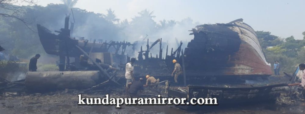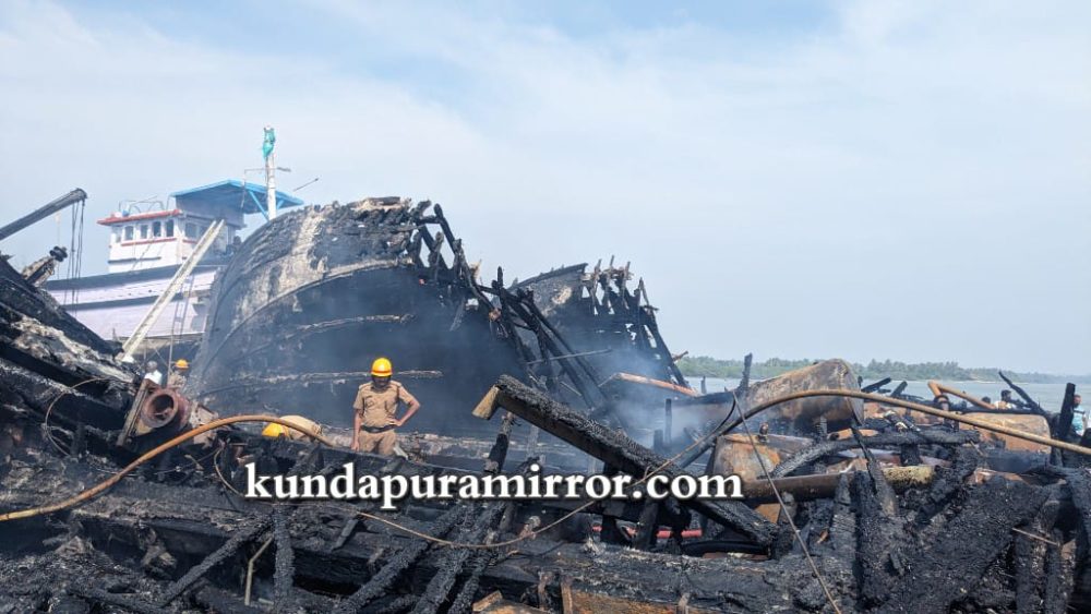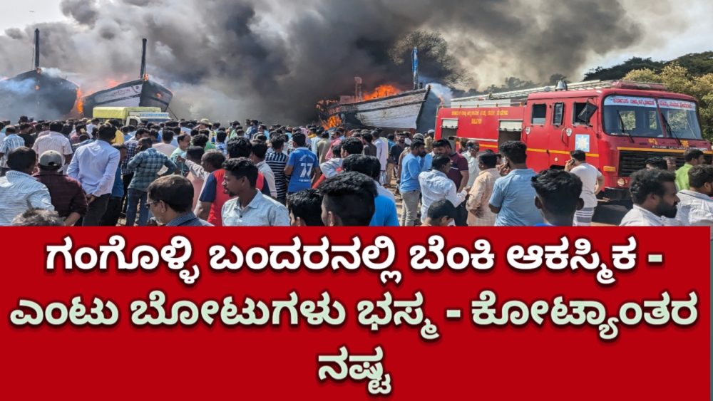 ಗಂಗೊಳ್ಳಿ : ಗಂಗೊಳ್ಳಿ ಗ್ರಾಮದ ಮ್ಯಾಂಗನೀಸ್ ವಾರ್ಫ್ನಲ್ಲಿ ನಿಲ್ಲಿಸಿದ್ದ ಸುಮಾರು 8 ಮೀನುಗಾರಿಕೆ ಬೋಟುಗಳು ಹಾಗೂ ಒಂದು ದೋಣಿಗಗೆ ಆಕಸ್ಮಿಕವಾಗಿ ಬೆಂಕಿ ತಗುಲಿ ಸಂಪೂರ್ಣ ಸುಟ್ಟು ಕರಕಲಾಗಿ ಕೋಟ್ಯಾಂತರ ರೂಪಾಯಿ ನಷ್ಟ ಉಂಟಾದ ಘಟನೆ ಸೋಮವಾರ ಬೆಳಿಗ್ಗೆ ನಡೆದಿದೆ.