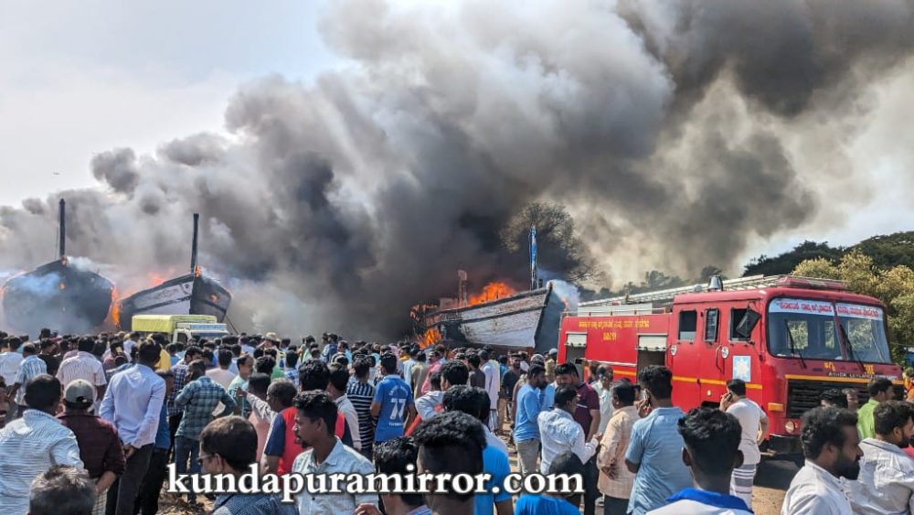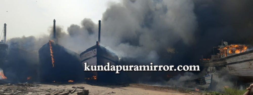ಗಂಗೊಳ್ಳಿಯ ಮ್ಯಾಂಗನೀಸ್ ವಾರ್ಫ್ ಪ್ರದೇಶದಲ್ಲಿ ಲಂಗರು ಹಾಕಿದ್ದ ಮೀನುಗಾರಿಕಾ ಬೋಟಿನಲ್ಲಿ ಕಾಣಿಸಿಕೊಂಡ ಬೆಂಕಿ ನೋಡ ನೋಡುತ್ತಿದ್ದಂತೆಯೇ ಅಕ್ಕ ಪಕ್ಕದ ಬೋಟುಗಳಿಗೂ ಆವರಿಸಿಕೊಂಡಿತು. ಬಲವಾದ ಗಾಳಿ ಬೀಸುತ್ತಿದ್ದ ಕಾರಣ ಬೆಂಕಿಯ ಪ್ರತಾಪ ಇನ್ನಷ್ಟು ಹೆಚ್ಚಾಗತೊಡಗಿತು. ಬೆಂಕಿ ಕಾಣಿಸಿಕೊಂಡ ಕೆಲವೇ ನಿಮಿಷಗಳಲ್ಲಿ ಸುಮಾರು 8 ಬೋಟಗಳಿಗೆ ಆವರಿಸಿಕೊಂಡಿತಲ್ಲದೆ, ಸ್ಥಳದಲ್ಲಿದ್ದ ಒಂದು ನಾಡದೋಣಿ ಹಾಗೂ ಪರ್ಸಿನ್ ಬೋಟಿನ 2 ಡಿಂಗಿ ಮತ್ತು ಎರಡು ನಾಡದೋಣಿಗಳ ಮೀನುಗಾರಿಕೆ ಬಲೆ ಬೆಂಕಿಗಾಹುತಿಯಾಯಿತು. ಬೆಂಕಿಯನ್ನು ನಂದಿಸಲು ಸ್ಥಳೀಯರು ಹರಸಾಹಸ ಪಟ್ಟರೂ ಯಾವುದೇ ಪ್ರಯೋಜನವಾಗಲಿಲ್ಲ. ಬೆಂಕಿಯ ಜ್ವಾಲೆ ಇನ್ನಷ್ಟು ತೀವ್ರಗೊಳ್ಳುತ್ತಿರುವುದರಿಂದ ಅಕ್ಕಪಕ್ಕದಲ್ಲಿರುವ ಮನೆ ಮಂದಿ ಆತಂಕಿತರಾದರು. ಆಕಾಶದೆತ್ತರಕ್ಕೆ ಕಪ್ಪು ಬಣ್ಣದ ಹೊಗೆ ಆವರಿಸಿಕೊಂಡಿದ್ದು, 8 ಬೋಟುಗಳು ಧಗಧಗನೆ ಉರಿದು ಹೋಗಲಾರಂಭಿಸಿತು.