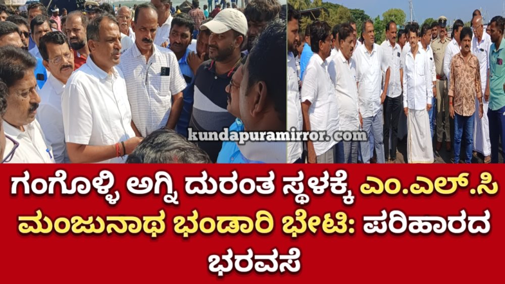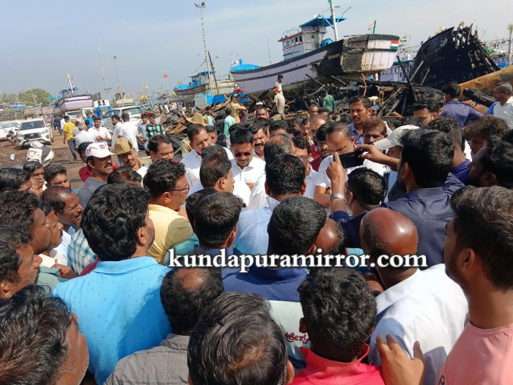 ಅವರು ಮಂಗಳವಾರ ಗಂಗೊಳ್ಳಿ ಬಂದರು ಸಮೀಪದ ಮ್ಯಾಂಗನೀಸ್ ರಸ್ತೆ ದೋಣಿ ನಿಲುಗಡೆ ಪ್ರದೇಶದಲ್ಲಿ ಸಂಭವಿಸಿದ ಅಗ್ನಿ ದುರಂತ ಸ್ಥಳಕ್ಕೆ ಭೇಟಿ ನೀಡಿ ಪರಿಸ್ಥಿತಿ ಅವಲೋಕಿಸಿ, ಮೀನುಗಾರರಿಗೆ ಧೈರ್ಯತುಂಬಿದ ಬಳಿಕ ಮಾಧ್ಯಮದವರೊಂದಿಗೆ ಮಾತನಾಡಿದರು.