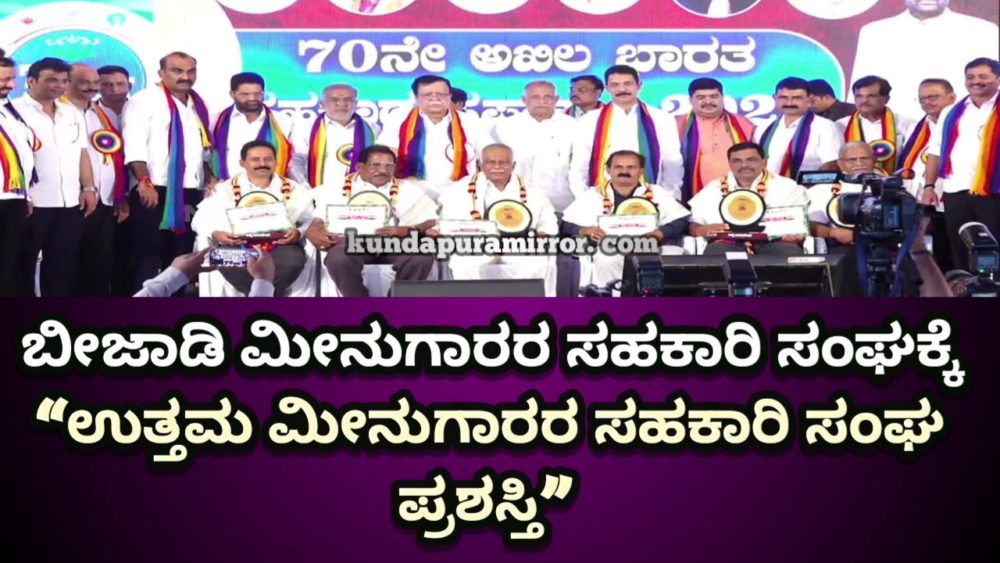 ಕುಂದಾಪುರ :70ನೇ ಅಖಿಲಭಾರತ ರಾಜ್ಯಮಟ್ಟದ ಸಹಕಾರಿ ಸಪ್ತಾಹದಲ್ಲಿ ಬೀಜಾಡಿ ಮೀನುಗಾರರ ಸಹಕಾರಿ ಸಂಘದ ಕಾರ್ಯವೈಖರಿ ಗುರುತಿಸಿ ಸಹಕಾರಿ ಸಚಿವರಾದ ಕೆ. ಎನ್ ರಾಜಣ್ಣ ರವರು ಮಂಗಳೂರಿನಲ್ಲಿ ನಡೆದ ರಾಜ್ಯ ಮಟ್ಟದ ಸಹಕಾರಿ ಸಪ್ತಾಹದಲ್ಲಿ “ಉತ್ತಮ ಮೀನುಗಾರರ ಸಹಕಾರಿ ಸಂಘ ಪ್ರಶಸ್ತಿ” ಪ್ರದಾನ ಮಾಡಿದರು.