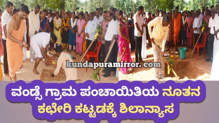 ನೂಜಾಡಿ ಕ್ರಾಸ್ ಸಮೀಪದ ಸರಕಾರಿ ಕಚೇರಿಗಳ ಸಂಕೀರ್ಣದಲ್ಲಿ ವಂಡ್ಸೆ ಗ್ರಾಮ ಪಂಚಾಯಿತಿನ ನೂತನ ಕಛೇರಿ ಕಟ್ಟಡ ನಿರ್ಮಾಣಕ್ಕೆ ಶಿಲಾನ್ಯಾಸ ನೆರವೇರಿಸಿ ಮಾತನಾಡಿದರು.