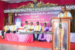 ಕಾರ್ಯಕ್ರಮವನ್ನು ದೀಪ ಬೆಳಗಿಸಿ ಉದ್ಘಾಟಿಸಿ ಮಾತನಾಡಿದ ಸಿಗಂಧೂರು ಶ್ರೀ ಚೌಡೇಶ್ವರಿ ಅಮ್ಮನವರ ದೇವಸ್ಥಾನ ಇದರ ಕಾರ್ಯದರ್ಶಿ ರವಿಕುಮಾರ್ ಹೆಚ್.ಆರ್ ಅವರು ಬಿಲ್ಲವ ಸಮಾಜ 26 ಉಪ ಪಂಗಡಗಳನ್ನು ಹೊಂದಿದ್ದು ಹರಿದು ಹಂಚಿಹೋಗಿದೆ. ಈ ಎಲ್ಲ ಉಪಪಂಗಡಗಳು ಒಂದಾದರೆ ರಾಜ್ಯದಲ್ಲಿ ಬಲಿಷ್ಠವಾಗಿ ಬೆಳೆಯಲು ಸಾಧ್ಯವಿದೆ. ರಾಜಕೀಯವಾಗಿ ಸಮಾಜದ ಪ್ರಾಬಲ್ಯತೆ ಕಾಣಬೇಕು. ವೈಷಮ್ಯಗಳ ಮರೆತು ಸಮಾಜದ ಪರವಾಗಿ ನಿಲ್ಲಬೇಕು. ಯಾವುದೇ ಅಧಿಕಾರ, ಹುದ್ದೆಗಳು ಬಂದರೂ ಕೂಡಾ ಸಮಾಜದ ಬಗ್ಗೆ ಕಳಕಳಿಯನ್ನು ಮರೆಯಬಾರದು. ಸಮಾಜದ ವಿದ್ಯಾರ್ಥಿಗಳು ಐಎಎಸ್, ಕೆಎಎಸ್ ನಂತಹ ಉನ್ನತ ವ್ಯಾಸಂಗದ ಗುರಿ ಹೊಂದಿರಬೇಕು. ಗುರುಗಳ ತತ್ವ ಸಿದ್ಧಾಂತವನ್ನು ಪಾಲಿಸಿಕೊಂಡು ಸಮಾಜ ಐಕ್ಯತೆಯಿಂದ ಸಮಗ್ರ ಅಭಿವೃದ್ಧಿಯ ಕಡೆಗೆ ಹೆಜ್ಜೆ ಇಡಬೇಕಾಗಿದೆ ಎಂದರು.