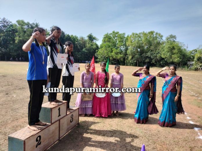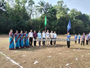 ಕುಂದಾಪುರ :ಸರ್ಕಾರಿ ಪ್ರೌಢಶಾಲೆ ಕಾಳಾವರದಲ್ಲಿ ವಾರ್ಷಿಕ ಕ್ರೀಡಾಕೂಟ ಬುಧವಾರದಂದು ನಡೆಯಿತು. ಕ್ರೀಡಾಕೂಟದ ರಮೇಶ್ ಆಚಾರ್ ಪಥ ಸಂಚಲನಕ್ಕೆ ಹಸಿರು ನಿಶಾನೆ ತೋರಿದರು. ನಂತರ ವಿದ್ಯಾರ್ಥಿಗಳಿಂದ ಶಿಸ್ತುಬದ್ಧ ಸುಂದರ ಪಥ ಸಂಚಲನ ನಡೆಯಿತು. ಕಾಳಾವರ ಗ್ರಾಮ ಪಂಚಾಯಿತಿಯ ಅಧ್ಯಕ್ಷರಾದ ಮಂಜುನಾಥ ಶೆಟ್ಟಿಗಾರ್ ಗೌರವ ವಂದನೆ ಸ್ವೀಕರಿಸಿದರು. ಸಭಾ ಕಾರ್ಯಕ್ರಮದಲ್ಲಿ ಅತಿಥಿಗಳು ಕ್ರೀಡಾ ಪಟುಗಳಿಗೆ ಶುಭ ಹಾರೈಸಿದರು. ಕ್ರೀಡಾ ಮಂತ್ರಿ ಸುಶಾಂತ್ ಕ್ರೀಡಾ ಪಟುಗಳಿಗೆ ಪ್ರತಿಜ್ಞಾ ವಿಧಿ ಬೋಧಿಸಿದರು.