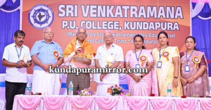 ಕುಂದಾಪುರ :ಶ್ರೀ ವೆಂಕಟರಮಣ ಪದವಿ ಪೂರ್ವ ಕಾಲೇಜಿನ ವಾರ್ಷಿಕೋತ್ಸವ ಸಮಾರಂಭದಲ್ಲಿ ನಿವೃತ್ತ ಪ್ರಾಂಶುಪಾಲರಾದ ಎ. ಲಕ್ಷ್ಮೀ ನಾರಾಯಣ ಚಾತ್ರ ಮುಖ್ಯ ಅತಿಥಿಯಾಗಿ ಭಾಗವಹಿಸಿ ಸ್ಪರ್ಧಾತ್ಮಕ ಹಾಗೂ ವಾರ್ಷಿಕ ಪರೀಕ್ಷೆಯ ಕಡೆಗೆ ಹೆಚ್ಚಿನ ಗಮನ ನೀಡಿ ತಮ್ಮ ಭವಿಷ್ಯವನ್ನು ರೂಪಿಸಿಕೊಳ್ಳಲು ವಿದ್ಯಾರ್ಥಿಗಳು ಶ್ರಮಿಸಬೇಕು. ಅಂತಹ ವಾತಾವರಣ ಶ್ರೀ ವೆಂಕಟರಮಣ ಸಂಸ್ಥೆಯಲ್ಲಿ ಇರುವುದರಿಂದ ವಿದ್ಯಾರ್ಥಿಗಳು ಅದಕ್ಕೆ ಸ್ಪಂದಿಸಬೇಕು ಎಂದರು.