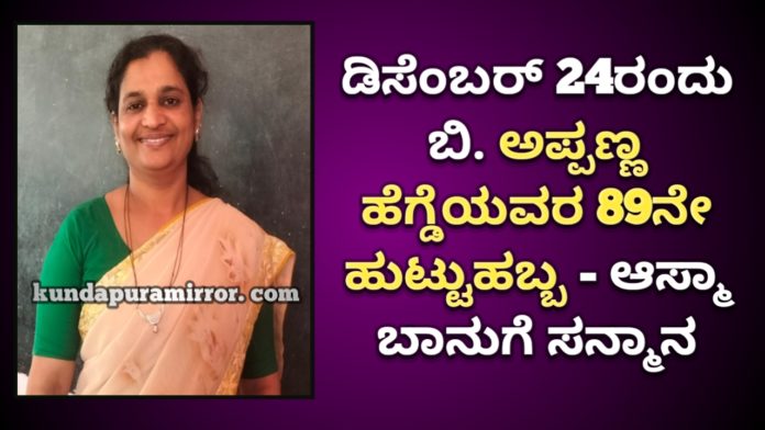 ಕುಂದಾಪುರ: ಡಿಸೆಂಬರ್ 24ರಂದು ಧಾರ್ಮಿಕ ಮುಂದಾಳು, ಮಾಜೀ ಶಾಸಕ ಬಿ. ಅಪ್ಪಣ್ಣ ಹೆಗ್ಡೆಯವರ 89ನೇ ಹುಟ್ಟುಹಬ್ಬ ಹಾಗೂ ಪ್ರಶಸ್ತಿ ಪ್ರದಾನ ಕಾರ್ಯಕ್ರಮದಲ್ಲಿ ವಿವಿಧ ಭತ್ತದ ತಳಿ ಸಂಗ್ರಾಹಕಿಯಾಗಿ ಸಾಮಾಜಿಕ ಮತ್ತು ಕೃಷಿ ಆಧಾರಿತ ಸೇವೆ ಸಲ್ಲಿಸುತ್ತಿರುವ ಮೂಡಬಿದಿರೆಯ ಆಸ್ಮಾ ಬಾನು ಅವರಿಗೆ ರನ್ನು ಸನ್ಮಾನಿಸಲಾಗುವುದು ಎಂದು ಈ ಬಾರಿಯ ಬಿ. ಅಪ್ಪಣ್ಣ ಹೆಗ್ಡೆ ಕೃಷಿ ಪ್ರಶಸ್ತಿ ಪ್ರಧಾನ ಮಾಡಲಾಗುತ್ತದೆ ಎಂದು ಟ್ರಸ್ಟ್ ನ ಅಧ್ಯಕ್ಷ ಬಿ. ರಾಮ ಕಿಶನ್ ಹೆಗ್ಡೆ ತಿಳಿಸಿದ್ದಾರೆ.