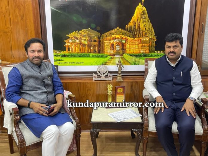 ಕುಂದಾಪುರ: ಶಿವಮೊಗ್ಗ ಲೋಕಸಭಾ ಸದಸ್ಯ ಬಿ.ವೈ.ರಾಘವೇಂದ್ರ ಅವರು ಕೇಂದ್ರ ಪ್ರವಾಸೋದ್ಯಮ ಸಚಿವ ಕಿಶನ್ ರೆಡ್ಡಿ ಅವರನ್ನು ಭೇಟಿ ಮಾಡಿ ಪ್ರವಾಸೋದ್ಯಮ ಇಲಾಖೆಯಿಂದ ಆಗಬೇಕಾಗಿರುವ ಬೈಂದೂರು ಅಭಿವೃದ್ಧಿ ಬಗ್ಗೆ ಚರ್ಚಿಸಿದರು. ಈ ಸಂದರ್ಭ, ಶಿವಮೊಗ್ಗ ಲೋಕಸಭಾ ವ್ಯಾಪ್ತಿಯ ಬೈಂದೂರು ವಿಧಾನಸಭಾ ಕ್ಷೇತ್ರವು ಶ್ರೀ ಕೊಲ್ಲೂರು ಮೂಕಾಂಬಿಕಾ ದೇವಸ್ಥಾನ, ಮೂಕಾಂಬಿಕಾ ವನ್ಯಜೀವಿ ಅಭಯಾರಣ್ಯ ಮತ್ತು ಕೊಡಚಾದ್ರಿ, ಸೋಮೇಶ್ವರ ಬೀಚ್, ತ್ರಾಸಿ-ಮರವಂತೆ ಗಳಂತಹ ಸಾಕಷ್ಟು ಪ್ರವಾಸೋದ್ಯಮ ಸ್ಥಳಗಳಿಂದ ಸುತ್ತುವರಿದಿದೆ ಎನ್ನುವುದನ್ನು ಮನವರಿಕೆ ಮಾಡಿದರು.