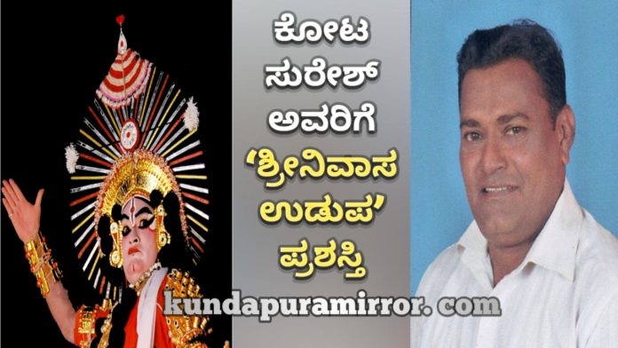 ಕೋಟ : ವಿಶ್ವ ವಿಖ್ಯಾತ ಸಾಲಿಗ್ರಾಮ ಮಕ್ಕಳ ಮೇಳದ ಸ್ಥಾಪಕರಲ್ಲಿ ಒಬ್ಬರಾದ ರಾಷ್ಟ್ರ ಪ್ರಶಸ್ತಿ ಪುರಸ್ಕೃತ ಶಿಕ್ಷಕ ದಿವಂಗತ ಕಾರ್ಕಡ ಶ್ರೀನಿವಾಸ ಉಡುಪರ ನೆನಪಿನಲ್ಲಿ ಸಾಲಿಗ್ರಾಮ ಮಕ್ಕಳ ಮೇಳ ಟ್ರಸ್ಟ್ ಕೊಡಮಾಡುವ 2023-24 ರ ಸಾಲಿನ ಉಡುಪ ಪ್ರಶಸ್ತಿಗೆ ಕೋಟ ಅಮೃತೇಶ್ವರಿ ಮೇಳದ ಯಕ್ಷಗಾನ ಕಲಾವಿದ, ಮಟ್ಪಾಡಿ ತಿಟ್ಟಿನ ಕೋಟ ಸುರೇಶ್ ಬಂಗೇರ ಭಾಜನರಾಗಿದ್ದಾರೆ.