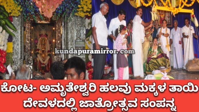 ಇಲ್ಲಿನ ಕೋಟ ಅಮೃತೇಶ್ವರೀ ಹಲವು ಮಕ್ಕಳ ತಾಯಿ ದೇಗುಲದ ವಾರ್ಷಿಕ ಜಾತ್ರೋತ್ಸವ ಕಾರ್ಯಕ್ರಮ ಬುಧವಾರ ಹಾಗೂ ಗುರುವಾರ ಸಂಪನ್ನಗೊಂಡಿತು.