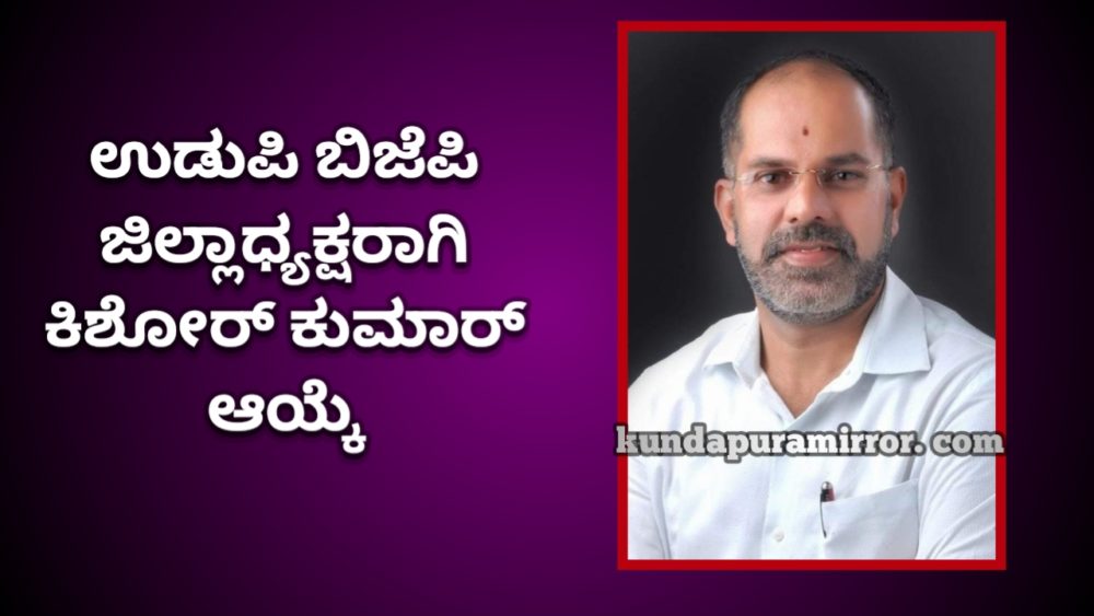 ಕುಂದಾಪುರ: ಉಡುಪಿ ಜಿಲ್ಲಾ ಬಿಜೆಪಿ ಅಧ್ಯಕ್ಷರಾಗಿ ಕಿಶೋರ್ ಕುಮಾರ್ ಕುಂದಾಪುರ ಅವರನ್ನು ನೇಮಕ ಮಾಡಲಾಗಿದೆ.