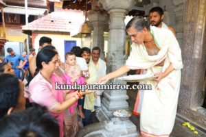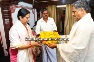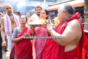 ಸಚಿವರನ್ನು ದೇವಸ್ಥಾನದ ಆಡಳಿತ ಮಂಡಳಿ ವತಿಯಿಂದ ಸ್ವಾಗತಿಸಲಾಯಿತು. ನಾಡಿನ ಒಳಿತಿಗಾಗಿ ಮೂಕಾಂಬಿಕಾ ದೇವರಿಗೆ ವಿಶೇಷ ಪೂಜೆ ಸಲ್ಲಿಸಿದರು. ಬಳಿಕ ದೇವಸ್ಥಾನದ ಆಡಳಿತ ಮಂಡಳಿ ವತಿಯಿಂದ ಸಚಿವೆ ಲಕ್ಷ್ಮಿ ಹೆಬ್ಬಾಳ್ಕರ್ ಹಾಗೂ ಅವರ ಪುತ್ರ ಮೃಣಾಲ್ ಹೆಬ್ಬಾಳ್ಕರ್ ಅವರನ್ನು ಸತ್ಕರಿಸಲಾಯಿತು. ಕುಟುಂಬ ಸದಸ್ಯರೊಂದಿಗೆ ಭೋಜನ ಸ್ವೀಕರಿಸಿದರು.