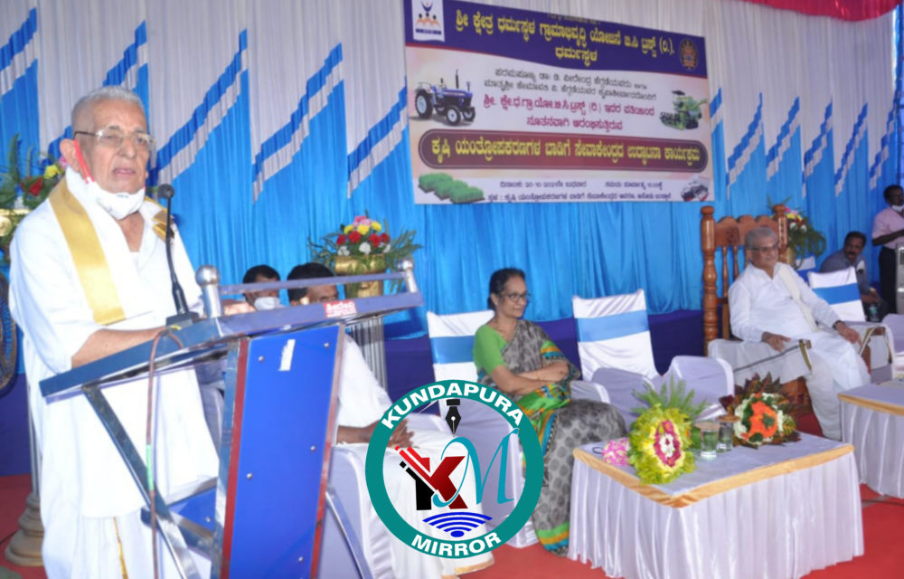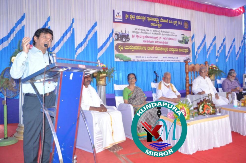 ಶ್ರೀ ಕ್ಷೇತ್ರ ಧರ್ಮಸ್ಥಳ ಗ್ರಾಮಾಭಿವೃದ್ದಿ ಯೋಜನೆ ಬಿ.ಸಿ ಟ್ರಸ್ಟ್ ಧರ್ಮಸ್ಥಳ ವತಿಯಿಂದ ನೂತನವಾಗಿ ಕುಂದಾಪುರ ತಾಲೂಕು ಕಾಳಾವರ ಗ್ರಾಮದ ಅಸೋಡು-ಬಂಡ್ಸಾಲೆಯಲ್ಲಿ ಆರಂಭಿಸಿದ ಕೃಷಿ ಯಂತ್ರೋಪಕರಣಗಳ ಬಾಡಿಗೆ ಸೇವಾ ಕೇಂದ್ರದ ಉದ್ಘಾಟಿಸಿ ಮಾತನಾಡಿದರು.