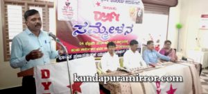 ಕುಂದಾಪುರ : ಸಾಮರಸ್ಯ, ಉದ್ಯೋಗ, ಘನತೆಯ ಬದುಕಿಗಾಗಿ ಎಂಬ ಘೋಷಣೆ ಅಡಿಯಲ್ಲಿ ಭಾರತ ಪ್ರಜಾಸತ್ತಾತ್ಮಕ ಯುವಜನ ಫೆಡರೇಷನ್ (ಡಿವೈಎಫ್ಐ) ಕುಂದಾಪುರ 15ನೇ ತಾಲೂಕು ಸಮ್ಮೇಳನ ಭಾನುವಾರ ಕುಂದಾಪುರ ಹಂಚು ಕಾರ್ಮಿಕರ ಭವನದಲ್ಲಿ ನಡೆಯಿತು.