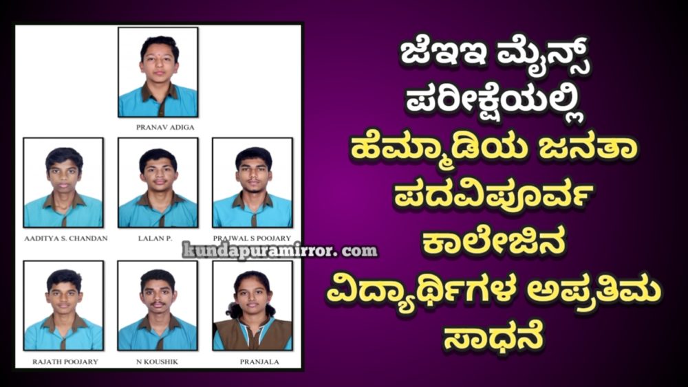 ಹೆಮ್ಮಾಡಿ: ರಾಷ್ಟ್ರ ಮಟ್ಟದಲ್ಲಿ ನಡೆದ ಜೆಇಇ ಮೈನ್ಸ್ ಸ್ಪರ್ಧಾತ್ಮಕ ಪರೀಕ್ಷೆಯಲ್ಲಿ ಹೆಮ್ಮಾಡಿ ಜನತಾ ಸ್ವತಂತ್ರ ಪದವಿಪೂರ್ವ ಕಾಲೇಜಿನ ವಿದ್ಯಾರ್ಥಿಗಳು, ಕಾಲೇಜು ಪ್ರಾರಂಭದ ದ್ವಿತೀಯ ವರ್ಷದಲ್ಲೇ ಅಪ್ರತಿಮ ಸಾಧನೆ ಮೆರೆದಿದ್ದಾರೆ. ಗ್ರಾಮೀಣ ಭಾಗದ ಪರಿಸರದಲ್ಲಿ ಆರಂಭಗೊಂಡಿರುವ ಶಿಕ್ಷಣ ಸಂಸ್ಥೆ ಸ್ಪರ್ಧಾತ್ಮಕ ಪರೀಕ್ಷೆಗಳಿಗೆ ಅತ್ಯುತ್ತಮ ತರಬೇತಿ ನೀಡುತ್ತಾ ಉತ್ತಮ ಶಿಕ್ಷಣ ನೀಡುತ್ತಿದೆ, ಜೆಇಇ ಮೈನ್ಸ್ 2024 ಪರೀಕ್ಷೆಯಲ್ಲಿ ಕ್ರಮವಾಗಿ ಪ್ರಣವ್ ಅಡಿಗ 95.33 ಪರ್ಸಂಟೈಲ್( 97.12) ಪರ್ಸಂಟೈಲ್(ಭೌತಶಾಸ್ತ್ರ)ಆದಿತ್ಯ ಸಿ.ಚಂದನ್ 90.42 ಪರ್ಸಂಟೈಲ್, ಲಲನ್ ಪಿ. 90.21 ಪರ್ಸಂಟೈಲ್, ಪ್ರಜ್ವಲ್ ಎಸ್.ಪೂಜಾರಿ 89.12ಪರ್ಸಂಟೈಲ್,ರಜತ್ ಪೂಜಾರಿ 87.82 ಪರ್ಸಂಟೈಲ್,ಎನ್. ಕೌಶಿಕ್ 87.52ಪರ್ಸಂಟೈಲ್,ಪ್ರಾಂಜಲಾ 85.24ಪರ್ಸಂಟೈಲ್ ಪಡೆದು ಜೆಇಇ ಅಡ್ವನ್ಸ್ ಪರೀಕ್ಷೆಗೆ ಅರ್ಹತೆ ಪಡೆದಿದ್ದಾರೆ.