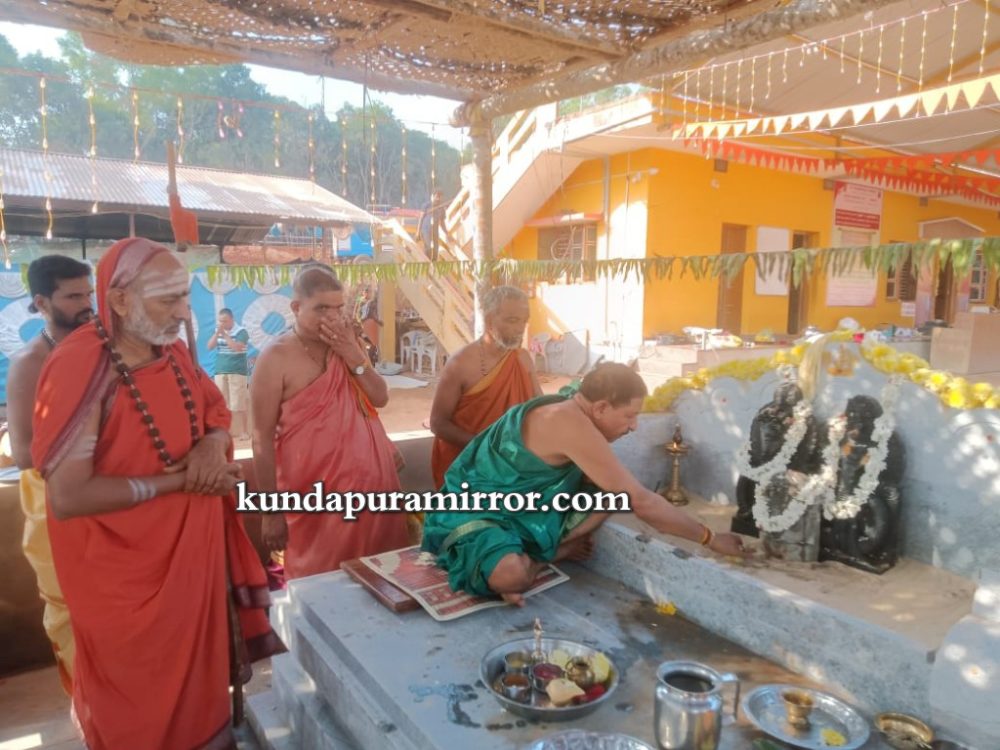 ಕಜ್ಕೆ ಶ್ರೀ ಅನ್ನಪೂರ್ಣೇಶ್ವರಿಯ ಶಿಲಾಮಯ ದೇವಸ್ಥಾನದ ನಿರ್ಮಾಣ ಸಮಿತಿಯ ಕಾರ್ಯಾಧ್ಯಕ್ಷ ಹೆಬ್ರಿ ಮಠದಬೆಟ್ಟು ರಾಜೇಶ ಆಚಾರ್ಯ ಲೀಲಾವತಿ ಆಚಾರ್ಯ ದಂಪತಿಗಳು ಪೂಜೆ ನೇರವೇರಿಸಿದರು.