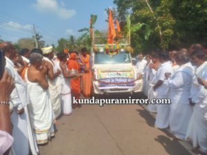 ಬ್ರಹ್ಮಾವರ : ಕಜ್ಕೆ ಶ್ರೀ ಅನ್ನಪೂರ್ಣೇಶ್ವರಿಯ ಶಿಲಾಮಯ ದೇವಸ್ಥಾನದ ಲೋಕಾರ್ಪಣೆಗೆ ಅಂಗವಾಗಿ ಫೆಬ್ರವರಿ 13 ರಿಂದ ನಾನಾ ಧಾರ್ಮಿಕ ಕಾರ್ಯಕ್ರಮಗಳು ಆರಂಭಗೊಂಡು ಬುಧವಾರ ಬಿಂಬ ಪ್ರತಿಷ್ಠಾಪನೆ ಗೊಳ್ಳಲಿರುವ ಅಂಗವಾಗಿ ಭಾನುವಾರ ಹಸಿರುಹೊರೆಕಾಣಿಕೆ ಮೆರವಣಿಗೆ ಜರುಗಿತು.