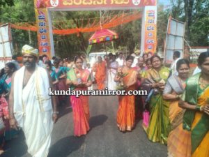 ನಾನಾ ಭಾಗದಿಂದ ಬಂದ ಹೊರೆಕಾಣಿಕೆ ಮೆರವಣಿಗೆ ಕಜ್ಕೆ ಶಾಖಾ ಮಠದ ಬಳಿ ಶ್ರೀ ಅನ್ನಪೂರ್ಣೇಶ್ವರಿ ದೇವಸ್ಥಾನಕ್ಕೆ ಸಾಗಿ ಬಂತು . ನಾನಾ ಭಜನಾ ತಂಡದಿಂದ ಭಜನೆ ಮಹಿಳೆಯರ ಪೂರ್ಣಕುಂಭ ಸ್ವಾಗತ ಮೆರವಣಿಗೆಯ ಮೆರಗು ಹೆಚ್ಚಿಸಿತ್ತು .