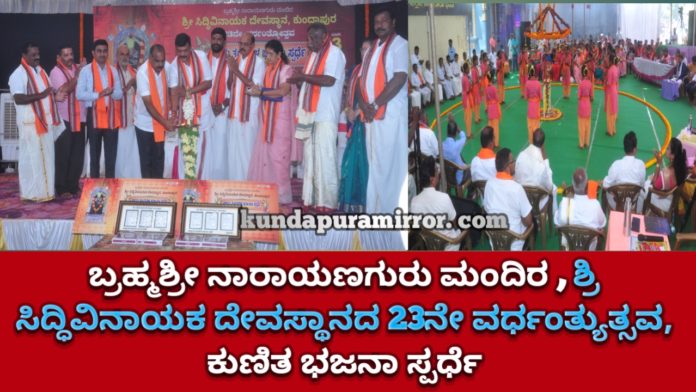 ಬ್ರಹ್ಮಶ್ರೀ ನಾರಾಯಣಗುರು ಮಂದಿರ , ಶ್ರಿ ಸಿದ್ಧಿವಿನಾಯಕ ದೇವಸ್ಥಾನದ 23ನೇ ವರ್ಧಂತ್ಯುತ್ಸವ, ಆಯ್ದ ತಂಡಗಳಿಂದ ಕುಣಿತ ಭಜನಾ ಸ್ಪರ್ಧೆ