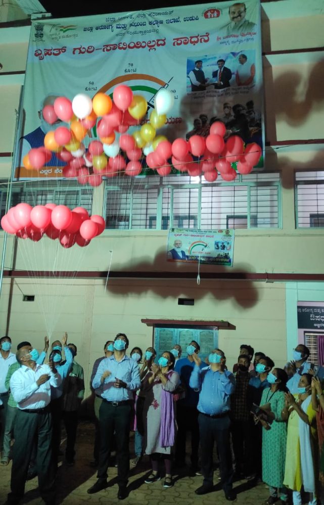 ಉಡುಪಿ: ರಾಷ್ಟ್ರದಲ್ಲಿ ಶತಕೋಟಿ ಲಸಿಕೆ ನೀಡಿದ ಸಾಧನೆ ಪ್ರಯುಕ್ತ ಜಿಲ್ಲಾಡಳಿತ ಮತ್ತು ಆರೋಗ್ಯ ಮತ್ತು ಕುಟುಂಬ ಕಲ್ಯಾಣ ಇಲಾಖೆವತಿಯಿಂದ ಡಿಹೆಚ್ಓ ಕಚೇರಿ ಆವರಣದಲ್ಲಿ ಆಗಸಕ್ಕೆ 100 ಬಲೂನುಗಳನ್ನು ಹಾರಿ ಬಿಡುವ ಮೂಲಕ ಸಂಭ್ರಮಾಚರಣೆ ಮಾಡಲಾಯಿತು.