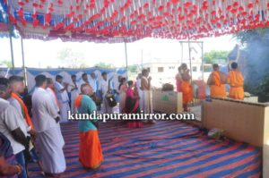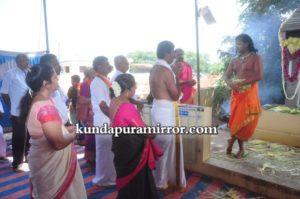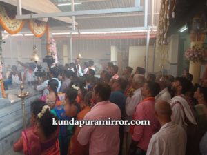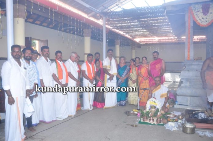 ಧಾರ್ಮಿಕ ವಿಧಿವಿಧಾನದಲ್ಲಿ ದೇಗುಲದ ಅಧ್ಯಕ್ಷ ಶೇವಧಿ ಸುರೇಶ್ ಗಾಣಿಗ ದಂಪತಿಗಳು,ಜಿ.ಗೋಪಾಲಕೃಷ್ಣ ಮಯ್ಯ ದಂಪತಿಗಳು ಭಾಗಿಯಾದರು.
