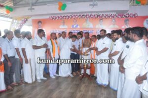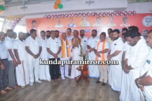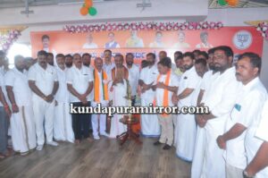 ಬೈಂದೂರು: ಭಾರತೀಯ ಜನತಾ ಪಾರ್ಟಿ ಬೈಂದೂರು ಮಂಡಲದ ವತಿಯಿಂದ ಬೈಂದೂರು ವಿಧಾನಸಭಾ ಕ್ಷೇತ್ರದ” ಚುನಾವಣೆಯ ಕಾರ್ಯಾಲಯವನ್ನು ಸೋಮವಾರ ಬೈಂದೂರಿನ ಹೋಟೆಲ್ ಅಂಬಿಕಾ ಇಂಟರ್ ನ್ಯಾಷನಲ್ ನಲ್ಲಿ ಉದ್ಘಾಟಿಸಲಾಯಿತು.