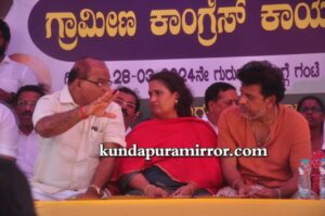 ಲೋಕಸಭಾ ಚುನಾವಣೆ ಹಿನ್ನೆಲೆಯಲ್ಲಿ ಗುರುವಾರದಂದು ಬೈಂದೂರು ವಿಧಾನಸಭಾ ಕ್ಷೇತ್ರದ ಗ್ರಾಮೀಣ ಕಾಂಗ್ರೆಸ್ ವತಿಯಿಂದ ಗೋಳಿಹೊಳೆಯಲ್ಲಿ ಆಯೋಜಿಸಲಾಗಿದ್ದ ಕಾರ್ಯಕರ್ತರ ಸಭೆಯಲ್ಲಿ ಭಾಗವಹಿಸಿ ಅವರು ಮಾತನಾಡಿದರು.