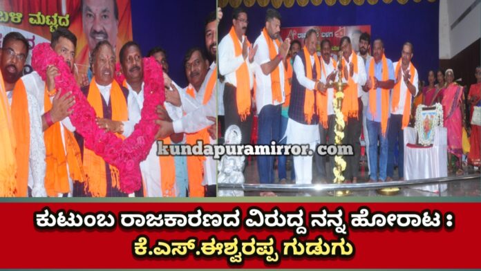ಬೈಂದೂರು: ರಾಜ್ಯದಲ್ಲಿ ಯಡಿಯೂರಪ್ಪನವರ ಕುಟುಂಬ ರಾಜಕಾರಣ ನಡೆಯುತ್ತಿದೆ. ಅವರು ಅವರ ಮಕ್ಕಳು ಮಾತ್ರ ರಾಜಕಾರಣದಲ್ಲಿ ಇರಬೇಕು ಎನ್ನುವ ಇರಾದೆ ನಿಷ್ಠವಂತ ಕಾರ್ಯಕರ್ತರು, ಹಿಂದುತ್ವದ ಪರ ಹೋರಾಟ ಮಾಡುವವರಿಗೆ ನೋವು ತಂದಿದೆ. ರಾಜ್ಯದಲ್ಲಿ ಕುಟುಂಬ ರಾಜಕೀಯದಿಂದ ಕರ್ನಾಟಕ ಬಿಜೆಪಿ ಮುಕ್ತವಾಗಬೇಕು ಆ ಹಿನ್ನಲೆಯಲ್ಲಿ ನಾನು ಸ್ಪರ್ಧೆ ಮಾಡುತ್ತಿದ್ದೇನೆ ಎಂದರು ಶಿವಮೊಗ್ಗ ಲೋಕಸಭಾ ಕ್ಷೇತ್ರದದಲ್ಲಿ ಪಕ್ಷೇತರ ಅಭ್ಯರ್ಥಿ ಕೆ.ಎಸ್ ಈಶ್ವರಪ್ಪ ಹೇಳಿದರು.