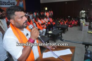 ರಾಷ್ಟ್ರಭಕ್ತರ ಬಳಗ ಬೈಂದೂರು ವತಿಯಿಂದ ಉಪ್ಪುಂದ ಪರಿಚಯ ಸಭಾಂಗಣದಲ್ಲಿ ನಡೆದ ಬೈಂದೂರು ಕಾರ್ಯಕರ್ತರ ಸಮಾವೇಶದಲ್ಲಿ ಮಾತನಾಡಿದರು.