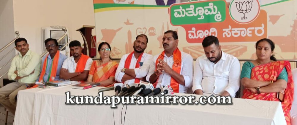 ಅಂಬಿಕಾ ಇಂಟರ್ನ್ಯಾಶನಲ್ ಹೋಟೆಲ್ ನಲ್ಲಿ ಭಾನುವಾರ ನಡೆದ ಸುದ್ದಿಗೋಷ್ಠಿಯಲ್ಲಿ ಮಾತನಾಡಿದ ಅವರು, ಬೈಂದೂರು ಮಂಡಲ ಬಿಜೆಪಿ ಹಿಂದುಳಿದ ವರ್ಗಗಳ ಮೋರ್ಚಾದ ಪದಗ್ರಹಣ ಕಾರ್ಯಕ್ರಮ ಆಗಿದೆ. ಭವ್ಯ ಭಾರತದ ನಿರ್ಮಾಣಕ್ಕಾಗಿ ಶ್ರಮಿಸಬೇಕು ಎನ್ನುವ ಹಿನ್ನೆಲೆಯಲ್ಲಿ ವಿವಿಧ ಮೋರ್ಚಾಗಳ ಚಟುವಟಿಕೆ ನಡೆಯುತ್ತಿದೆ. ಹಿಂದುಳಿದ ವರ್ಗದವರನ್ನೇ ಸಂಘಟಿಸಿ ಪಕ್ಷಕ್ಕೆ ಕರೆತರುವ ಪ್ರಯತ್ನವನ್ನು ಹಿಂದುಳಿದ ವರ್ಗಗಳ ಮೋರ್ಚಾದಿಂದ ಮಾಡಲಾಗುತ್ತಿದೆ. ಬೈಂದೂರು ಮಂಡಲದಿಂದ ಲೋಕಸಭಾ ಚುನಾವಣೆ ಹಿನ್ನೆಲೆಯಲ್ಲಿ ಪಕ್ಷದ ವ್ಯಾಪ್ತಿಯನ್ನು ವಿಸ್ತರಿಸುವ ದೃಷ್ಟಿಯಿಂದ ಹಿಂದುಳಿದ ವರ್ಗದಲ್ಲಿ ಬರುವ ಸಣ್ಣ ಸಣ್ಣ ಜಾತಿಗಳ ಸಮಾವೇಶ ಮಾಡುವುದು, ಆ ಮೂಲಕ ಪ್ರಧಾನಿ ನರೇಂದ್ರ ಮೋದಿಯವರ ಯೋಜನೆ ಮತ್ತು ಯೋಚನೆಯನ್ನು ಕಾರ್ಯಗತಗೊಳಿಸುವ ನಿಟ್ಟಿನಲ್ಲಿ ಬಿಜೆಪಿ ಅಭ್ಯರ್ಥಿಯನ್ನು ಗೆಲ್ಲಿಸಲು ಶ್ರಮಿಸುತ್ತಿದ್ದೇವೆ ಎಂದರು.