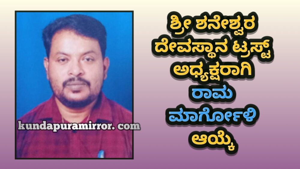 ಕುಂದಾಪುರ: ಶ್ರೀ ಶನೇಶ್ವರ ದೇವಸ್ಥಾನ ಟ್ರಸ್ಟ್ ಮಾರ್ಗೋಳಿ, ಬಸ್ರೂರು ಇದರ ನೂತನ ಅಧ್ಯಕ್ಷರಾಗಿ ರಾಮ ಮಾರ್ಗೋಳಿ ಆಯ್ಕೆಯಾಗಿದ್ದಾರೆ. ಮಾ.24ರಂದು ಶ್ರೀ ಅನ್ನಪೂರ್ಣೇಶ್ವರಿ ಭವನದಲ್ಲಿ ನಡೆದ 12ನೇ ವಾರ್ಷಿಕ ಮಹಾಸಭೆಯಲ್ಲಿ ನೂತನ ಪದಾಧಿಕಾರಿಗಳ ಆಯ್ಕೆ ನಡೆಯಿತು.